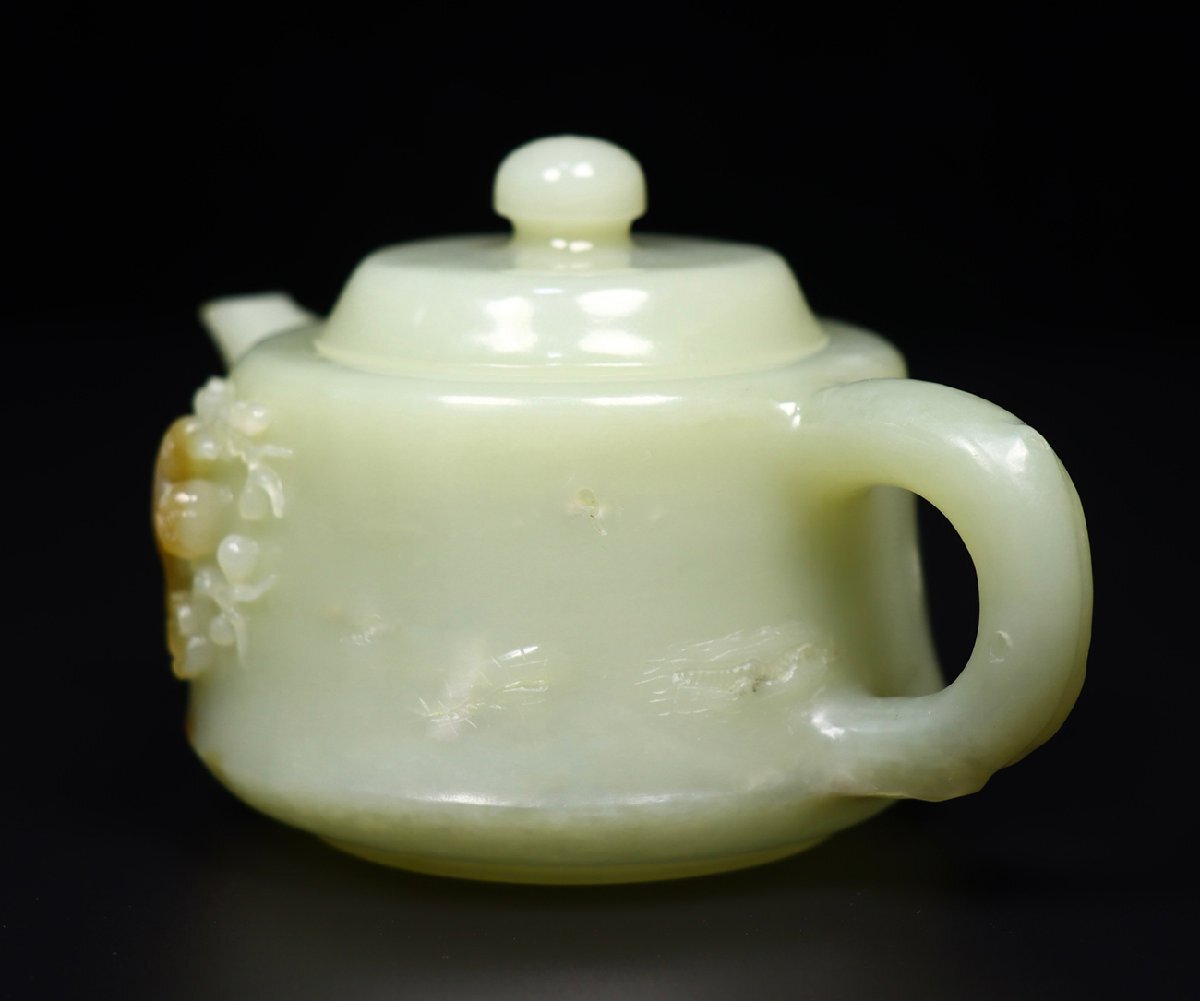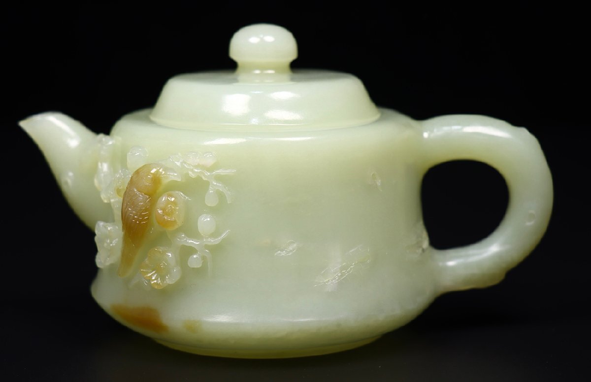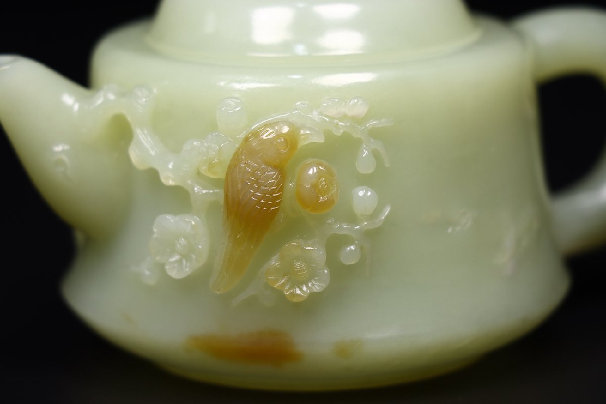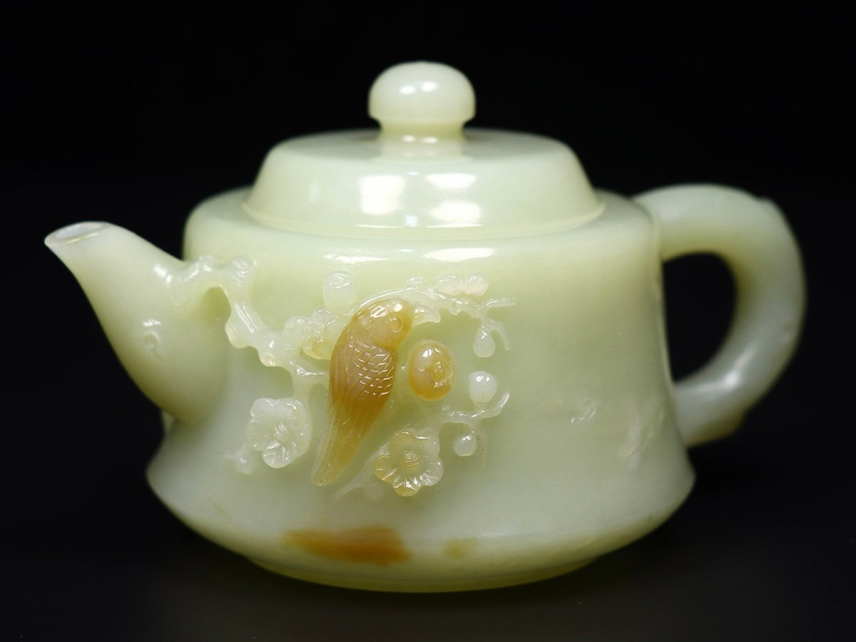 【安】清時代 和田玉 花鳥彫紋壺 極細工 古置物 古擺件 中国古美術 時代物 古董品 307 サイズ(約寸) |