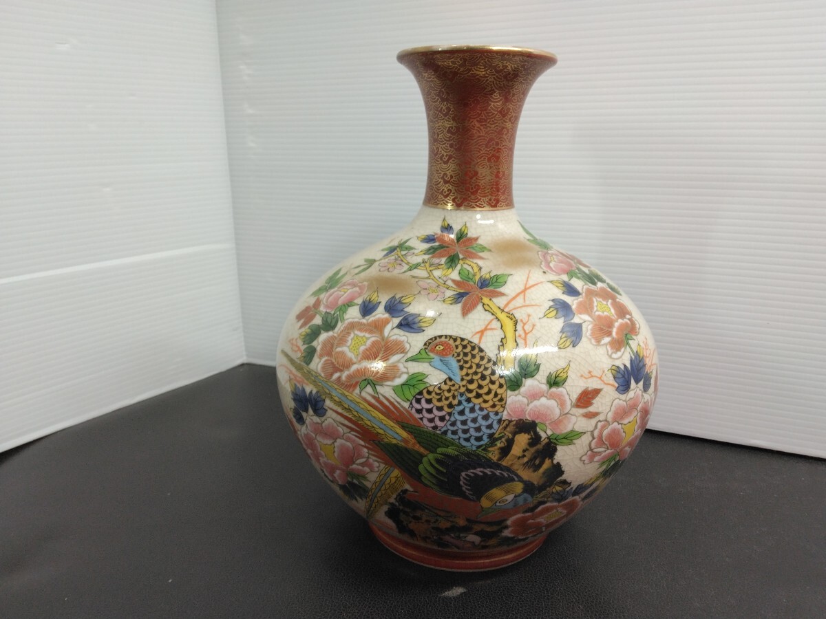当時物 薩摩焼 花鳥図 花器 花瓶 骨董品 壺 置物 焼き物 陶器 古美術品 工芸品