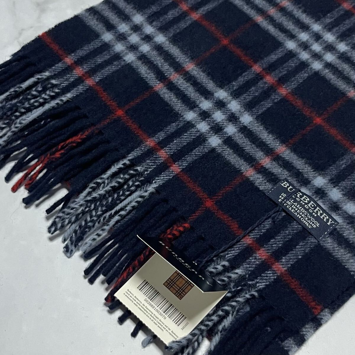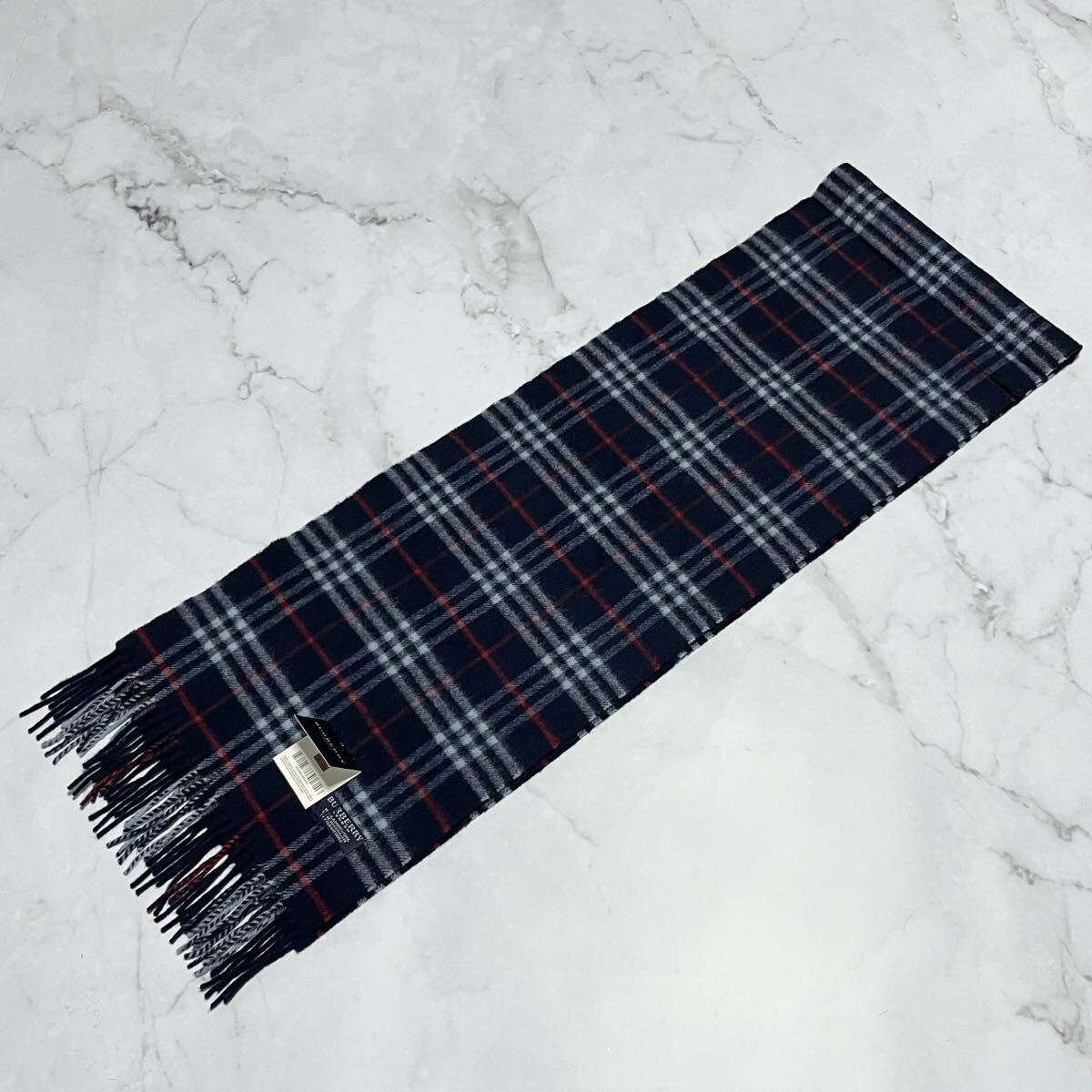 深みのあるネイビーをベースに、クラシカルなチェック柄が映えるBURBERRY LONDONのマフラーです。