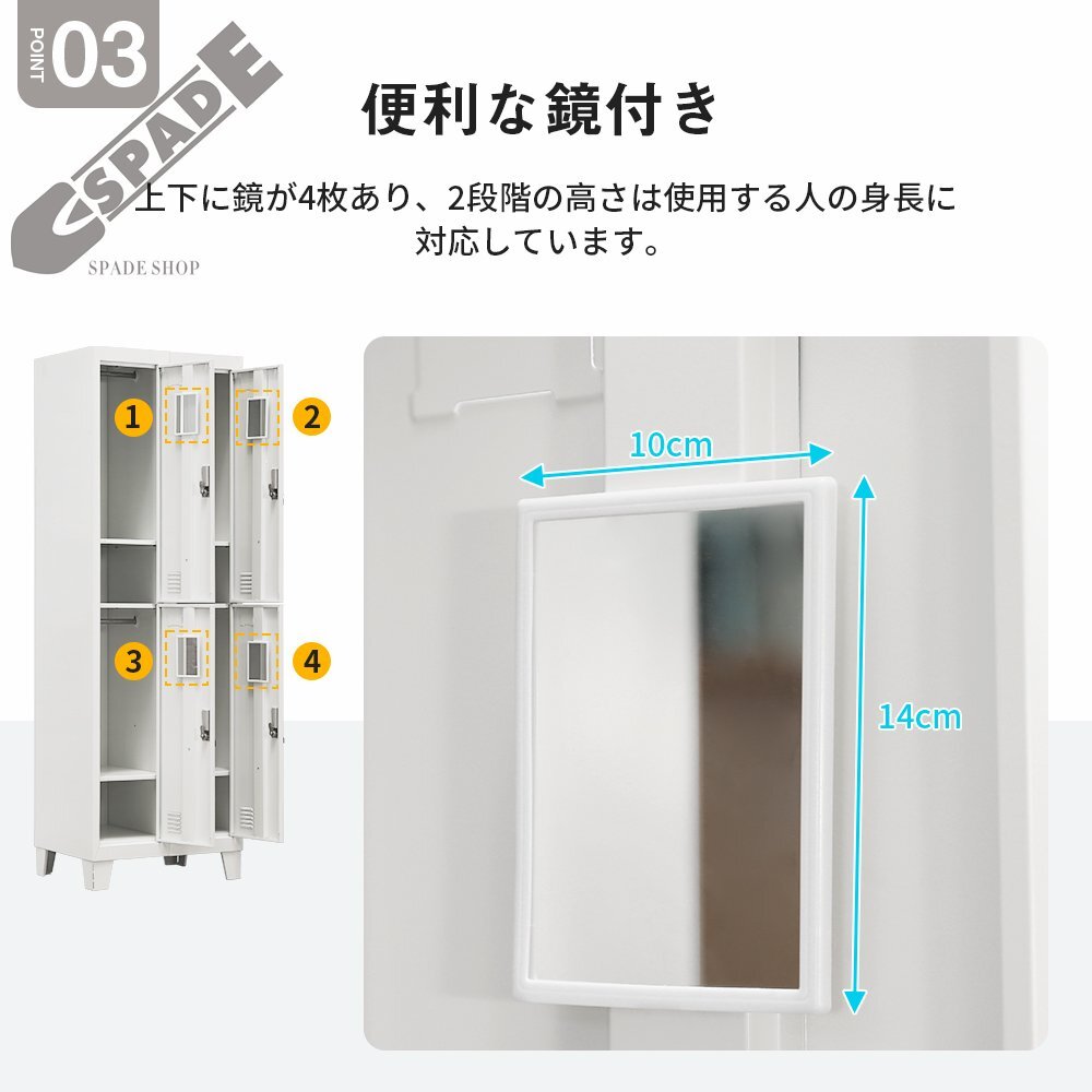 • 【便利な鏡付き】上下に鏡が4枚あり、2段階の高さは使用する人の身長に対応しています。