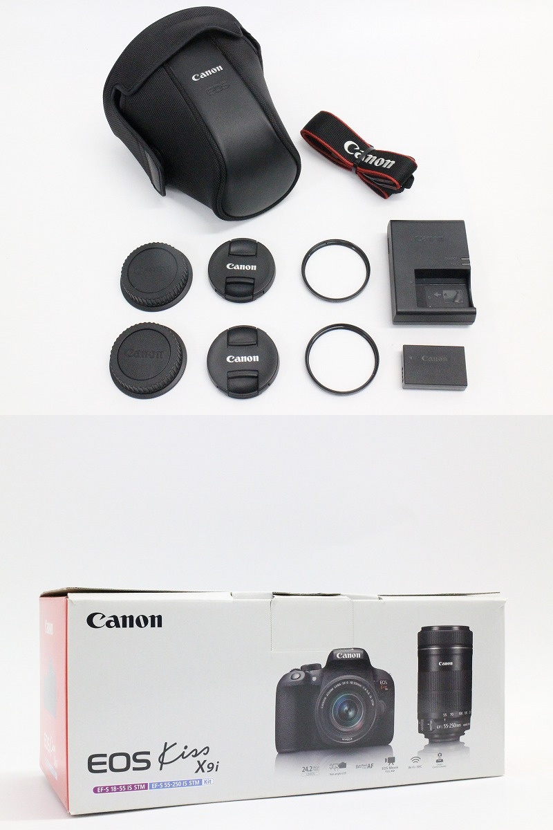■メーカー : Canon ■型番 : EOS Kiss X9i ■レンズ型番 ・EF-S 18-55mm F4-5.6 IS STM ・EF-S 55-250mm F4-5.6 IS STM 【商品の状態 当店での確認内容】 基本動作は確認できておりますが、使用や経年による臭い等ございます。 「商品の状態」に関しましては当方主観の目安となります。外観などは中古品で個人差もありますので詳細は画像にてご判断ください。 画像にて不明な点はご質問下さい。 出品商品は画像のものですべてになります。画像に写っているもの以外は付属いたしません。 (中古品となるためレンズ内のチリ/ホコリに関しましては、撮影に影響が出ない限りは記載しておりません。) (総シャッター数が記載の商品に関しましてはあくまで目安となります。) ※注意※ ヤフオクのシステム上、送料表記が送料未定となっておりますが、送料に関しては全て有償となりますので下記を参照下さい。 【送料 全国一律 1,580 円 沖縄、離島は別途お見積り】 ※送料がお得になるサービスです(下取りシステムのご案内です) ※ストア決済決済利用時に※クレジットカードや※PayPay残高/※PayPayクレジットをご利用の方は留意点がございますのでこちらをご参照の上ご利用ください。 当ストアでは商品を安全にお届け出来るよう提携運送会社と協議の上、発泡緩衝材や強度段ボールの使用等 運送会社が指定する梱包方法や資材を採用しております。 より安全にお届け出来るよう商品仕様により梱包サイズが大きくなる場合や個口数が増える事がございます。 【当ストアオークションルールを入札前に必ずご確認ください。】 【落札後の取引手順】 ・落札後は取引ナビにて、必要事項をご入力後、送信ください。 取引終了後48時間(土、日は除く)以内に入力をお願い致します。 ※ご連絡が頂けない場合は落札者様都合でのキャンセルとさせていただきます。 ・落札代金(商品代金+消費税+送料)の入金をお願い致します。 ※大型商品の場合は送料確定後の決済となる為取引ナビを入力頂き、当ストアより送料のご案内が来るまでお待ちください。(土曜、日曜、祝日の場合は翌営業日より順次ご案内いたします) ・お支払い方法はクレジットカード/PayPay残高/PayPayクレジット/PayPay銀行/ゆうちょ銀行のみです。 【落札後の取引手順】 ・落札後は取引ナビにて、必要事項をご入力後、送信ください。 取引終了後48時間(土、日は除く)以内に入力をお願い致します。 ※ご連絡が頂けない場合は落札者様都合でのキャンセルとさせていただきます。 ・落札代金(商品代金+消費税+送料)の入金をお願い致します。 ※大型商品の場合は送料確定後の決済となる為取引ナビを入力頂き、当ストアより送料のご案内が来るまでお待ちください。(土曜、日曜、祝日の場合は翌営業日より順次ご案内いたします) ・お支払い方法は※クレジットカード/※PayPay残高/※PayPayクレジット/PayPay銀行/ゆうちょ銀行のみです。 ※商品代金引換(代引き)のお取り扱いはしておりません。 ※領収証の発行が必要な方はご連絡ください。 ※銀行振込の際の振込手数料はご負担願います。 ・入金確認後に出荷手配を致します。 (原則入金確認後3営業日以内に発送いたしますが、大型や重量のある製品はお時間をいただく場合もございます。) ・発送は当店指定の運送会社の元払いのみでの発送となります。 ※他の運送会社、送料代引き等は致しかねます。 ※落札者様ご自身での運送会社の手配いただく事も可能ですが荷物事故の責任の所在の問題上、梱包は致しかねます。 ※店頭にお越し頂き手渡しも可能(福岡市早良区)です。ご希望の方はご落札後にご連絡下さい。 ・大型/重量物商品の送料につきましては商品の特性上、荷降ろし状況等により送料が大きく前後し運送業者に別途見積りが必要な為、早めのお問い合わせにてお見積り上、入札をお願い致します。 【初期不良の保証について】 ・商品到着後の初期動作不良、また配送中の事故による破損、不具合が有る場合は、商品発送後10日以内に当ストアまでご連絡ください。当ストアでは修理での対応を優先させて頂きますが、修理不可の場合は全額返金させて頂きます。 (商品代金+消費税+送料のお支払い頂いた金額となります) 【初期不良の保証の対象外について】 次の場合は保証の対象外となりますのご留意ください ・ジャンク商品、現状商品、難あり商品での出品商品。 ※難あり商品に関しましては動作確認時に一部動作不良が確認された商品になり、記載している動作確認以外にも、動作不良がある可能性もございます。こちらに関しましても保証対象外となりますことをご理解ください。 ・年代物のオーディオなどで、当店にてわからない範囲で部品が交換されている場合 ・楽器類の特殊機材(マイクロスコープ等)での確認までは行っておりません。気になる方は事前にご質問いただくか、入札をお控えください。 ※初期不良に関しましては【商品の状態】に記載のもの、またそれによって起因する動作不良は対象外です。 ※