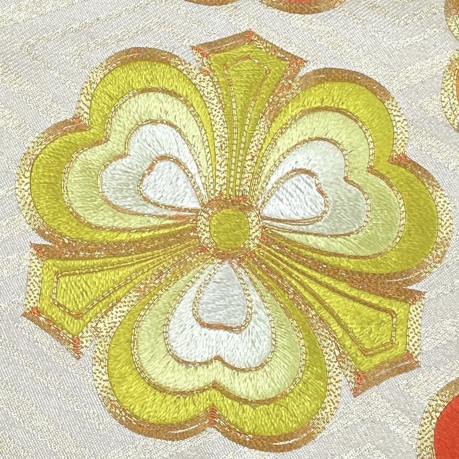 着物月花 総刺繍 蘇州刺繍 金駒刺繍 引箔 品のある花 袋帯 お太鼓柄 正絹 金糸 ob6252