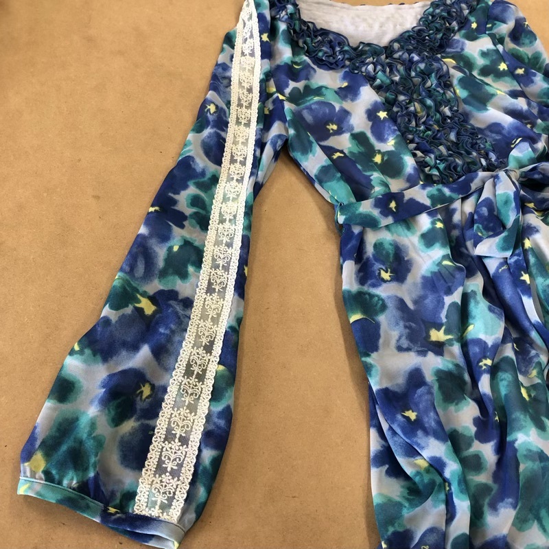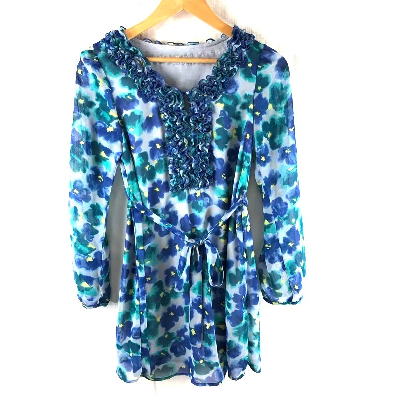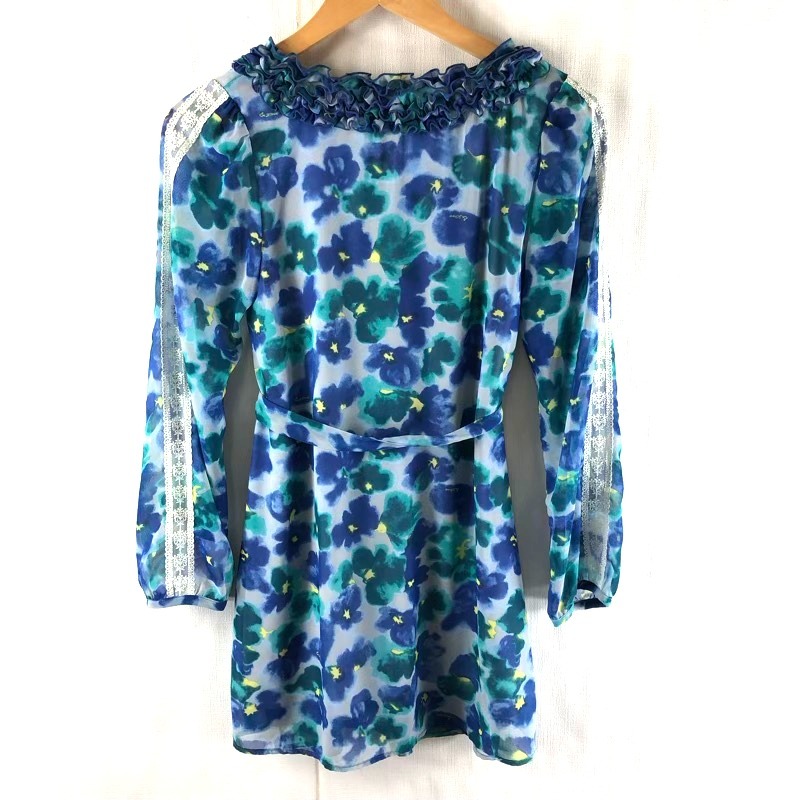 | 商品名 | アンドラブ &LOVE チュニック 花柄 長袖 袖レース 襟フリル 腰ひも 裏地付き 青系 Sサイズ 942236 |