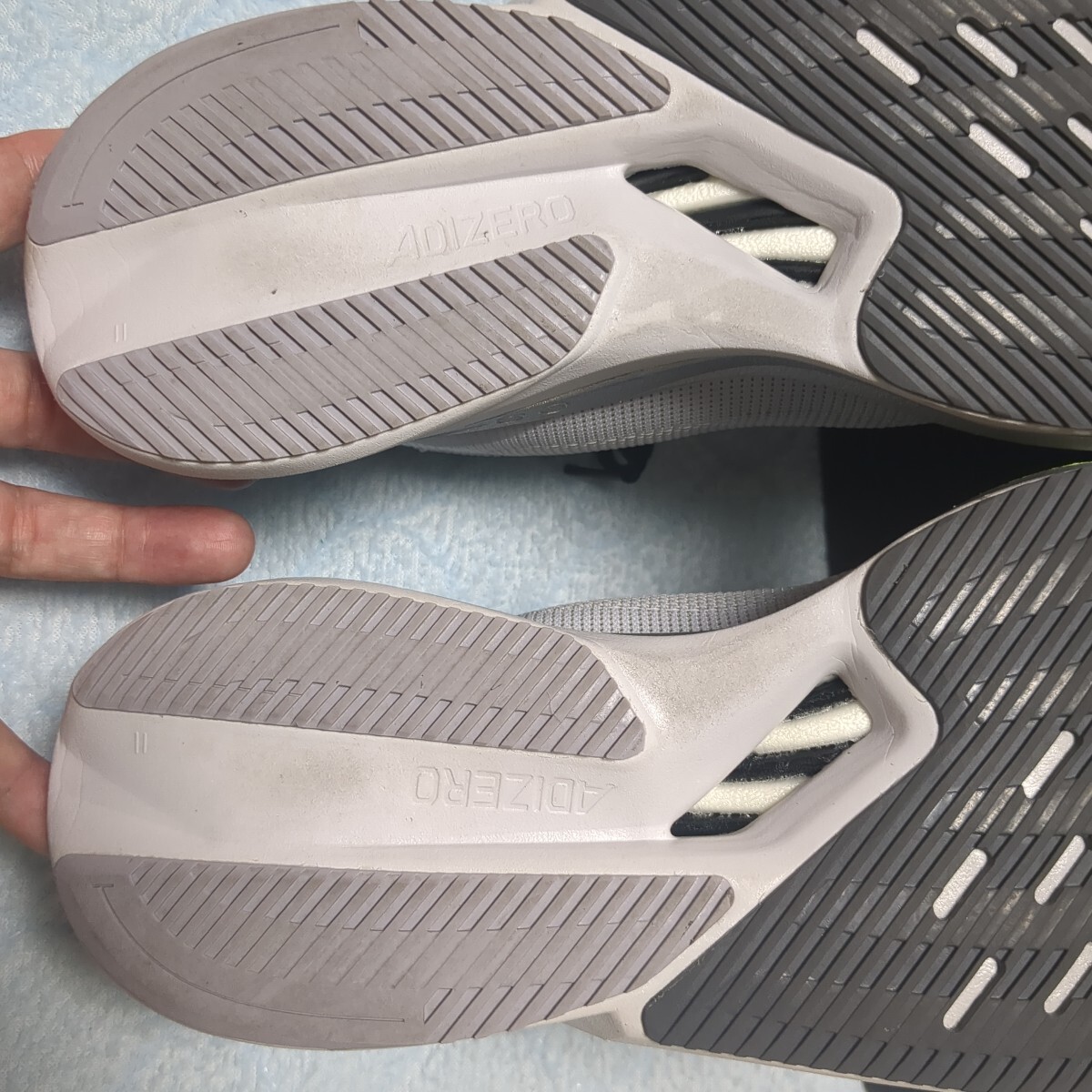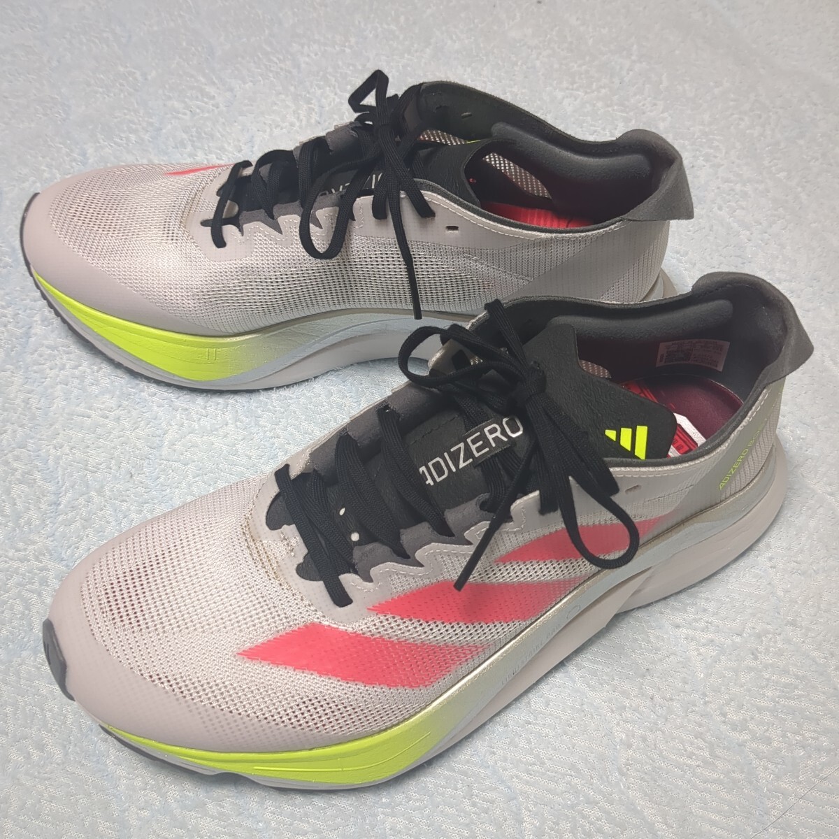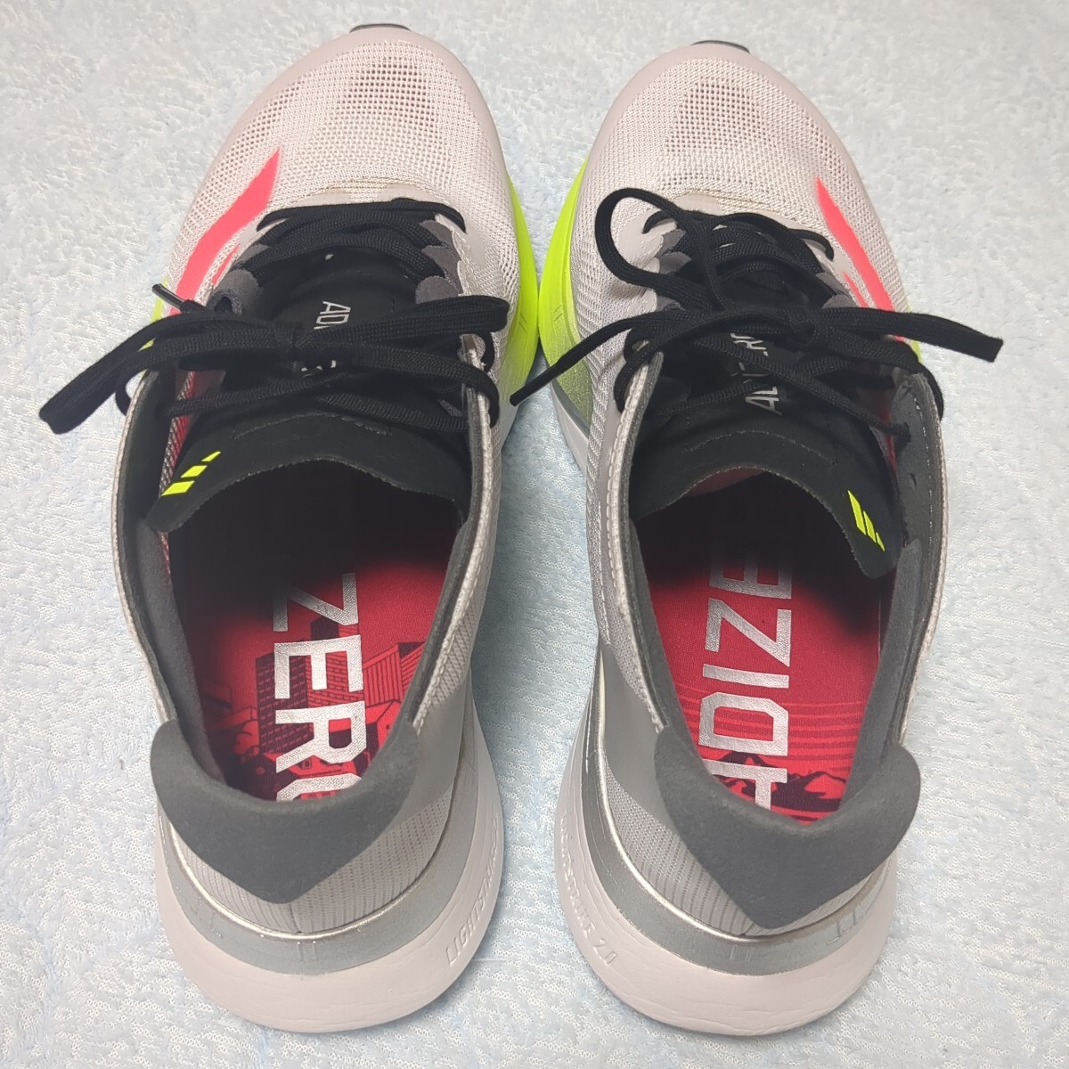 クッションがあり反発もありますので、ゆっくりジョグから速いペース走でも使え、レースでも使えるシューズです。走行距離は2km以下です。増え過ぎたシューズの整理で出品させていただきます。
