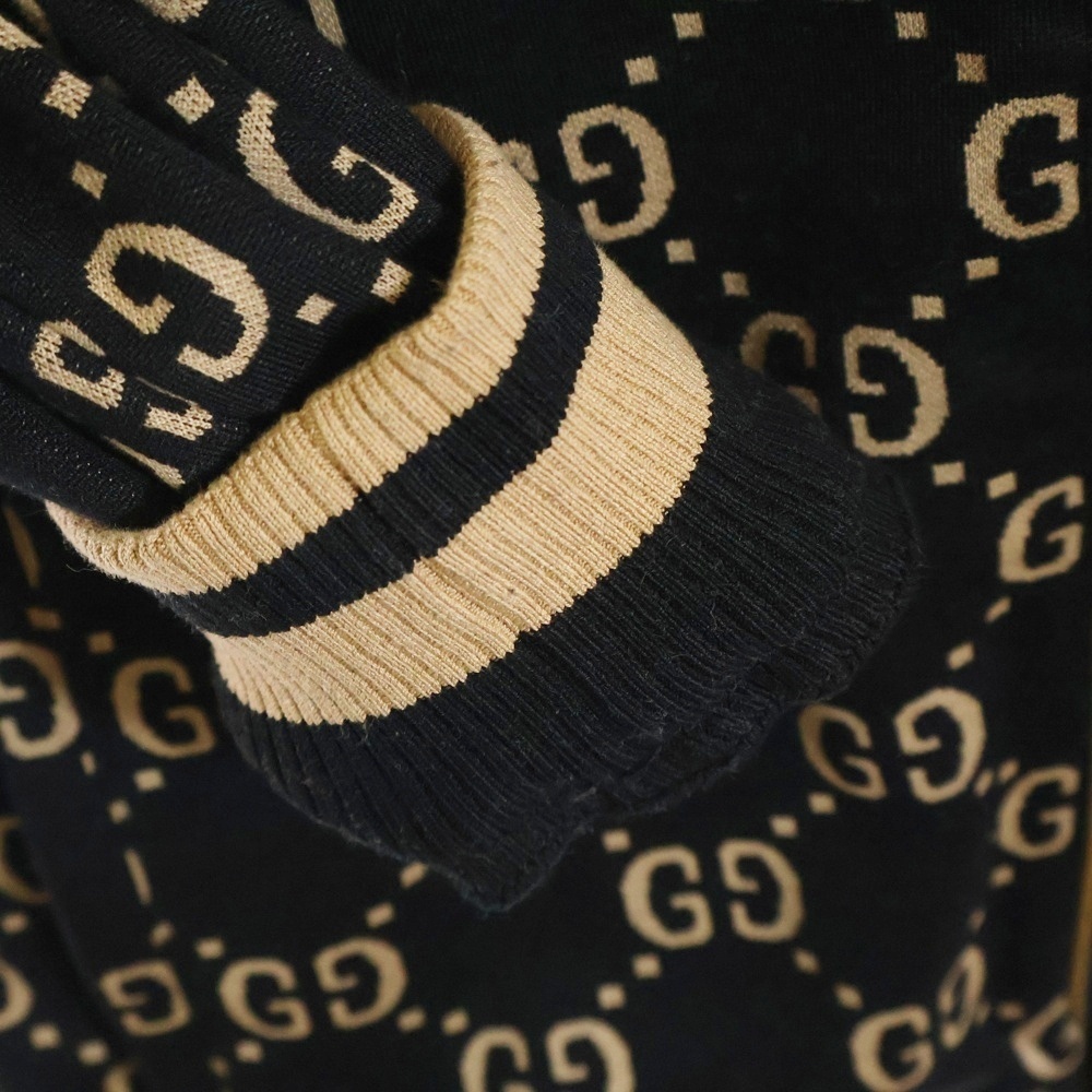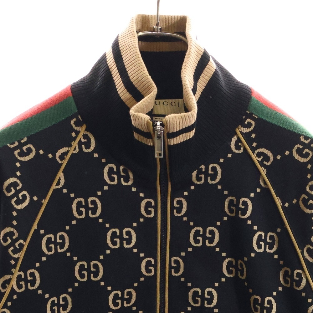 品名22AW GG総柄ジャガード シェリーライン コットンジャージ ジップアップ トラックジャケット ブラック/ベージュ 695955