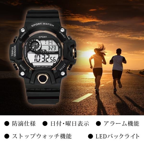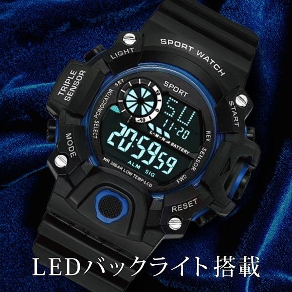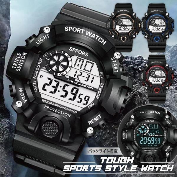 腕時計 デジタルウォッチ 多機能 アラーム 防滴 バックライト搭載 見やすい メンズ おしゃれ 軽量 シンプル 送料無料 100T◇ タフ腕時計IX