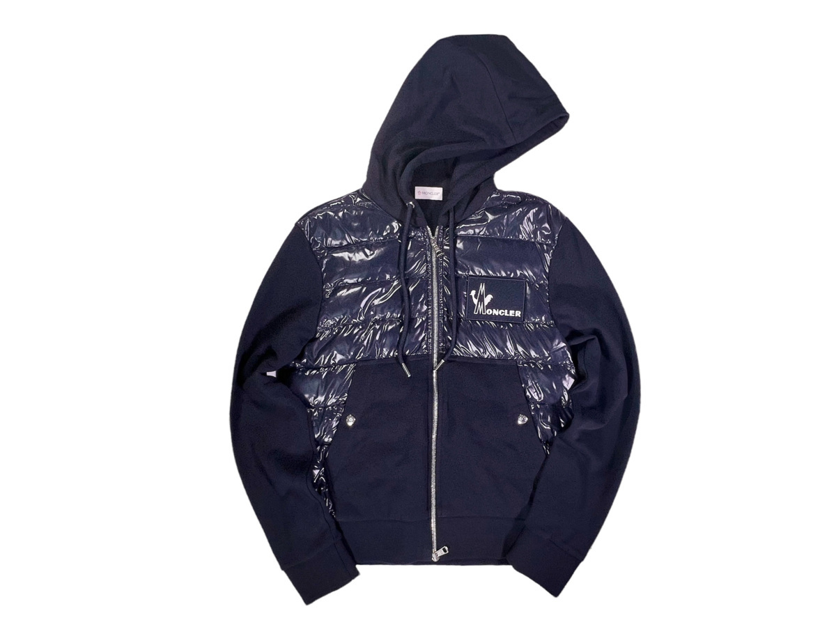 I769(M).. MONCLER モンクレール フェザー+ダウン ナイロン パーカ ロゴ ★ 778 ネイビー