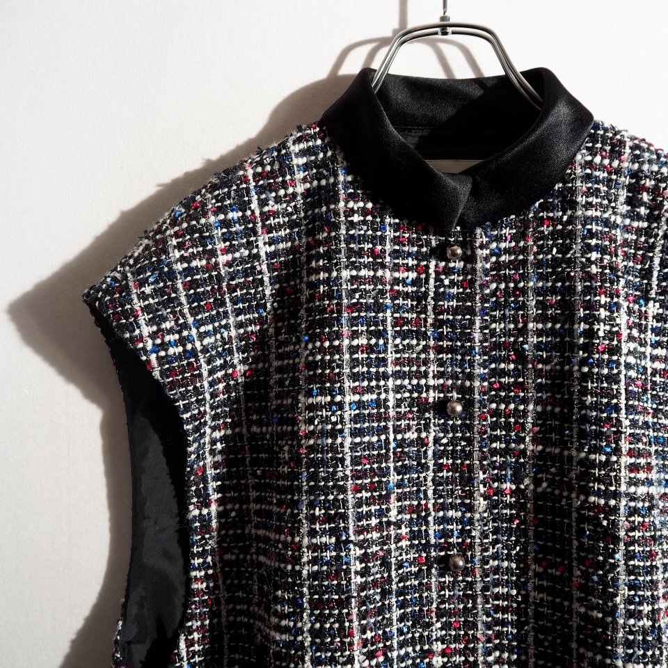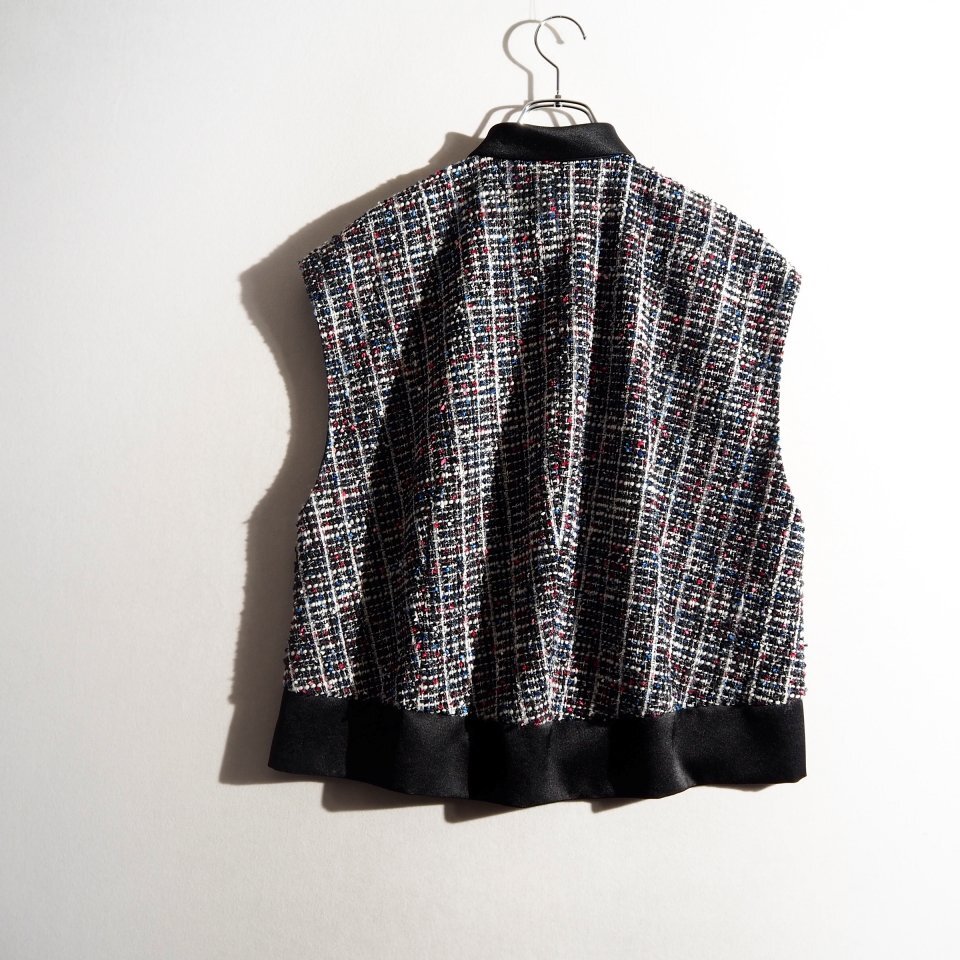 25AW(春秋向き) 20周年記念 トリコロールツイードノースリーブジャケット 38 オーバーサイズ