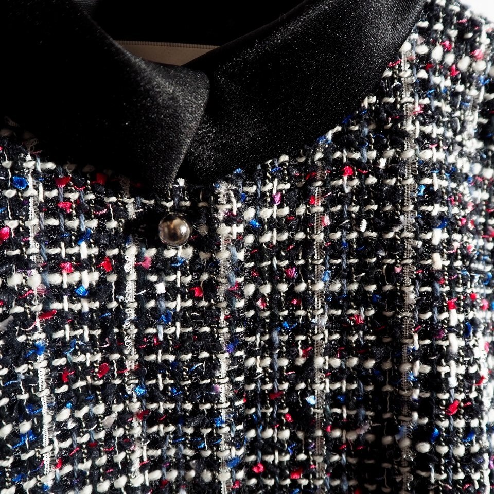 生地 :やや薄手の柔らかいファンシーツイード・部分サテン