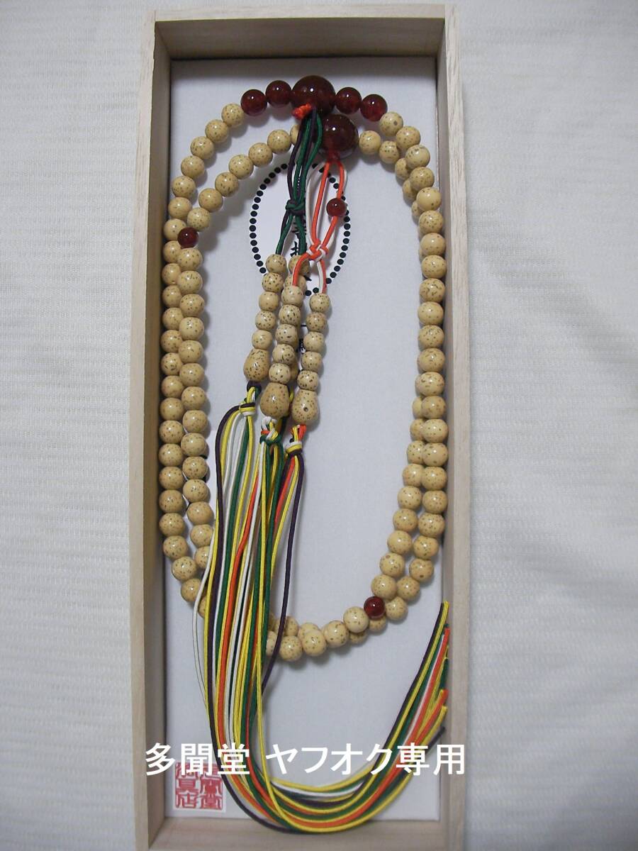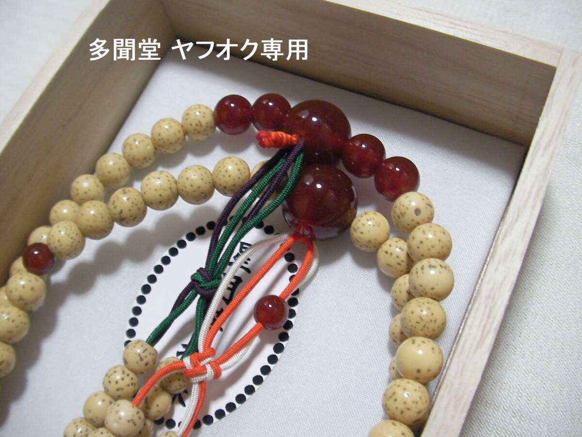 星月菩提珠、赤瑪瑙仕立ての五大力念珠、桐箱入り。