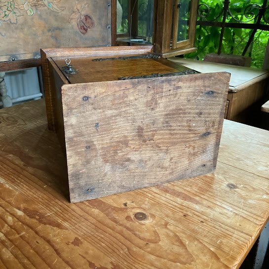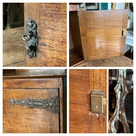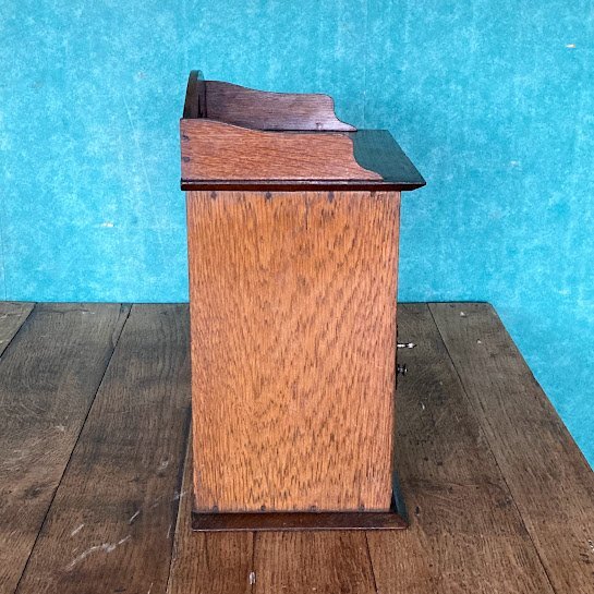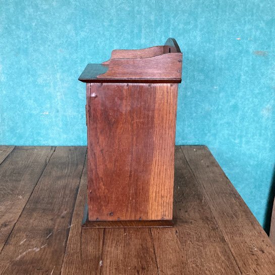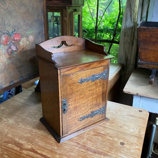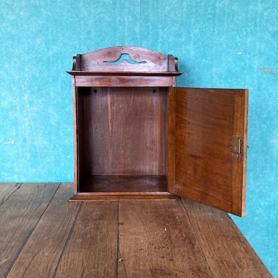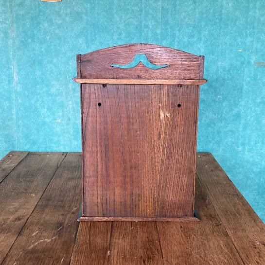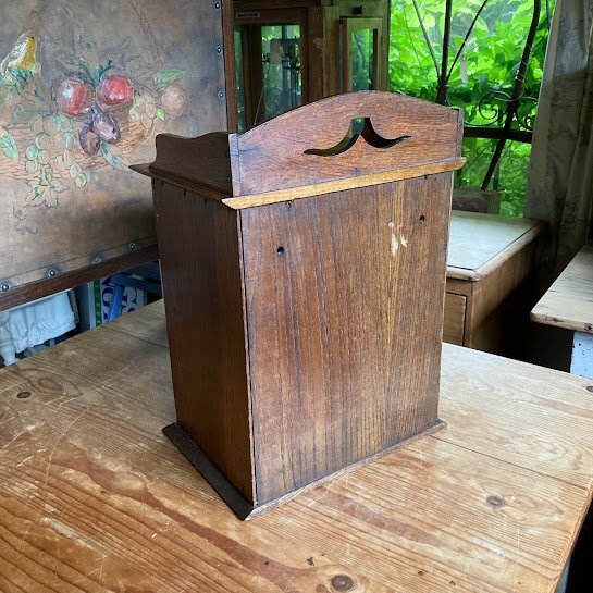 壁掛けもできる小さなキャビネットが届きました【39-210】イギリス製、オーク材、1930年代。直接壁に取り付けるため、背面に穴が2か所開いています。玄関やキッチン、リビングなどゴチャゴチャしがちな小物をすっきり収納したいですね。低めのベッドサイドテーブルとしても活躍しそうです。小さな鍵が付属していますが、しっかり固定するためのものではありませんので少し強めに引っ張ると扉は開きます。下には小さなつまみもあるので、鍵は可愛らしい飾りとしてお楽しみください。お気に入りアイテムのコレクションケースや、ペット用のお仏壇にもつかえますよ。福岡市南区の店舗にてお渡しもできますのでお気軽にどうぞ!