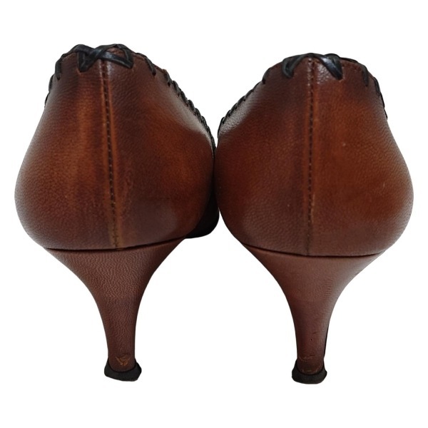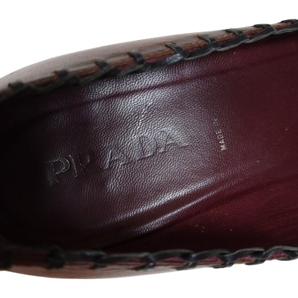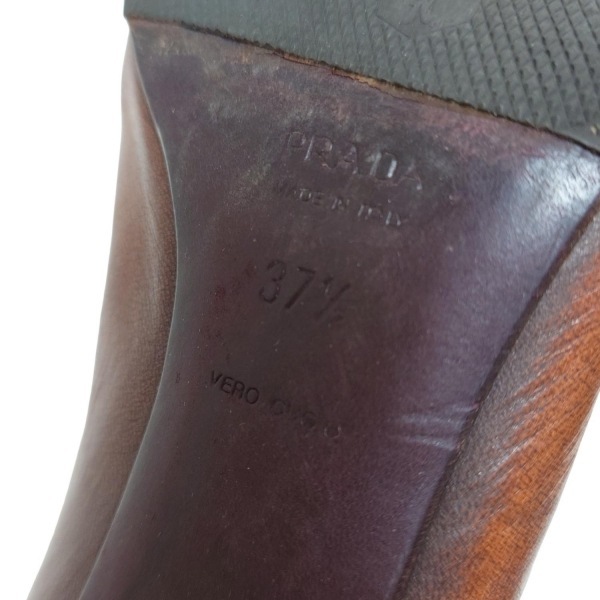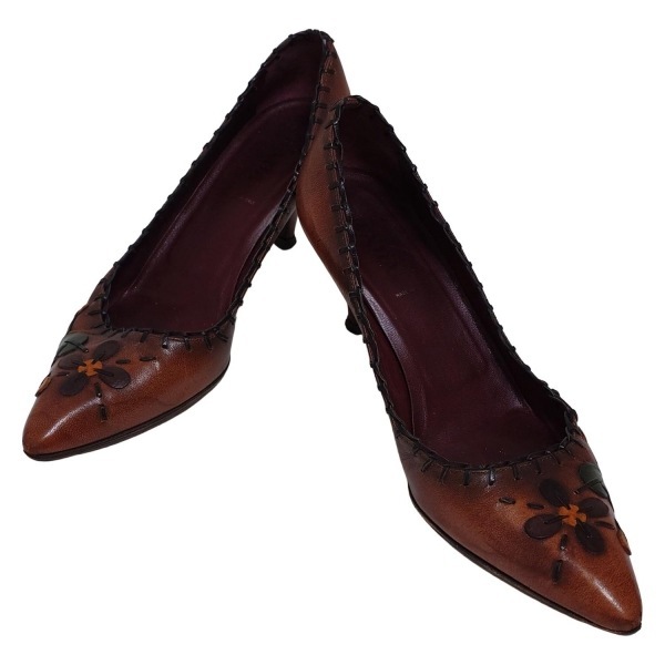 プラダ PRADA パンプス 37 1/2 - レザー ブラウン×黒×ダークグリーン レディース フラワー(花)/ステッチ/アウトソール張替済 靴