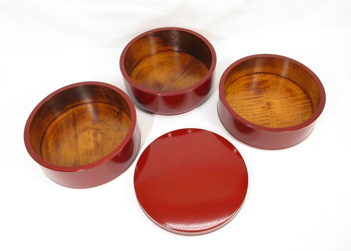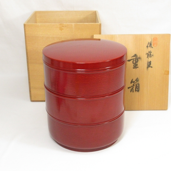 【B0945a】漆器 後藤塗 重箱 讃岐 漆芸 三重 丸重 香川漆器 くりぬき 三段 共箱 即決