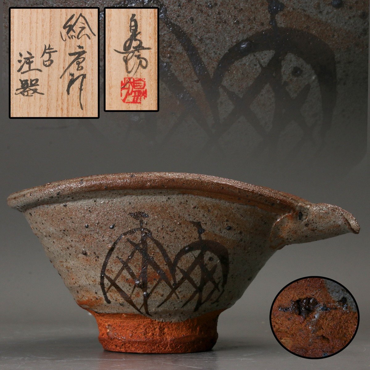 【SAG】中川自然坊 絵唐津 片口注器 共箱 本物保証