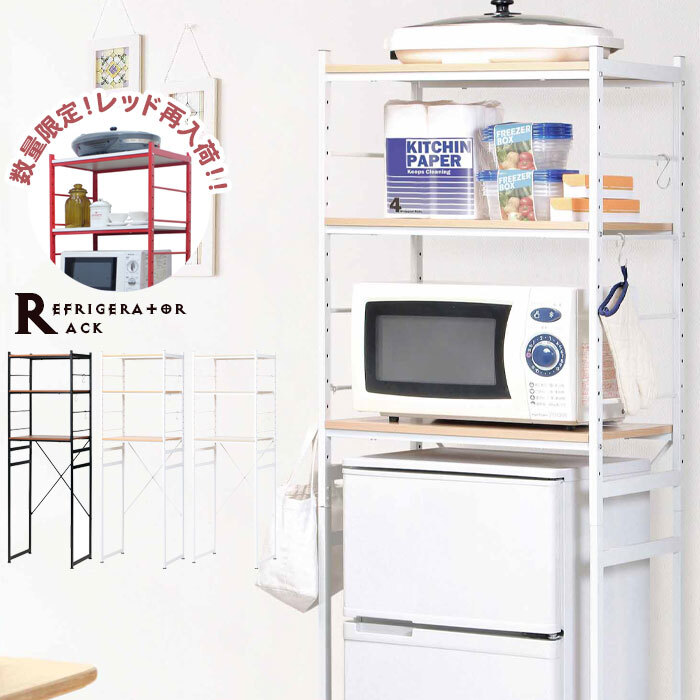 棚板3段の豊富な収納力で、キッチン家電やキッチン用品をひとまとめ。