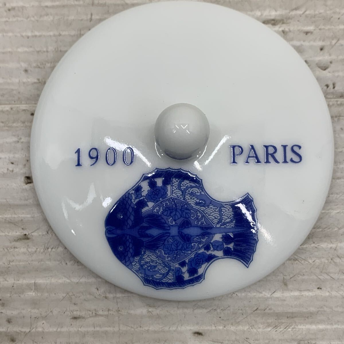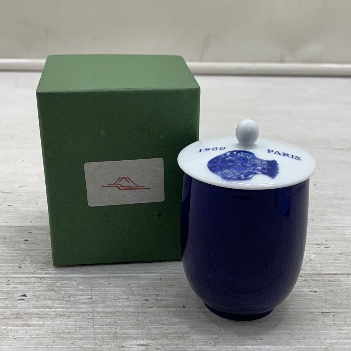 I ☆未使用品☆ 深川製磁 1900 巴里 パリ 蓋付 湯呑 深川ブルー 宮内庁御用達 和食器 陶器 陶芸 希少 箱付 簡易清掃済み