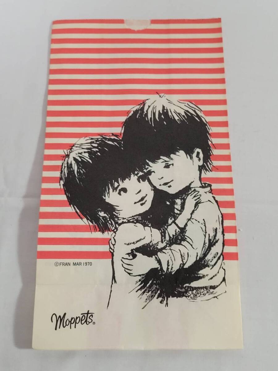 ★この紙袋は、ロッテがかつて「Moppets」というキャラクターシリーズを展開していた際の販促品で1970年代の昭和時代に人気を博したシリーズで、現在ではヴィンテージ品として人気のコレクターアイテムとなっています。