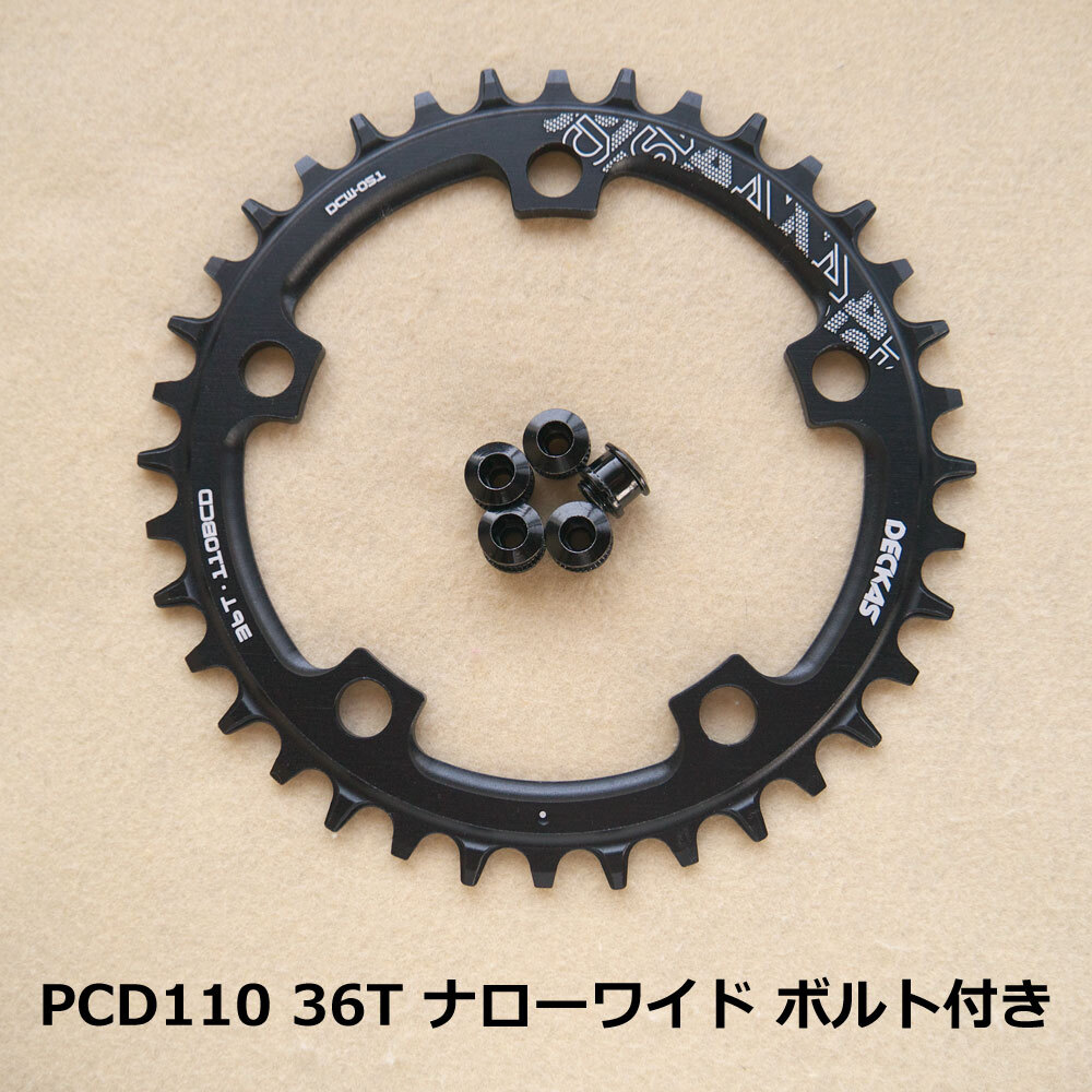 【送料無料】新品 ナローワイド 36T チェーンリング 11速 ボルト付き PCD110 黒 DECKAS