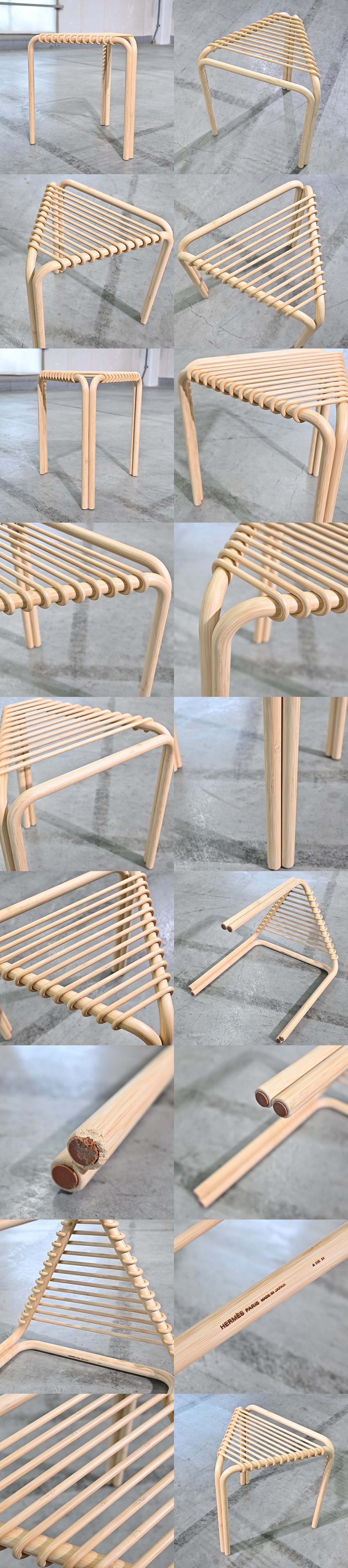 Hermes 150万「Karumi/カルミ」トライアングルスツール 椅子 チェア リビング アルヴァロ シザ Alvaro Siza 竹 日本製 バンブー エルメス