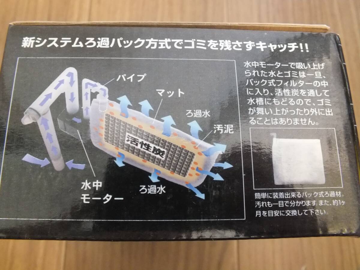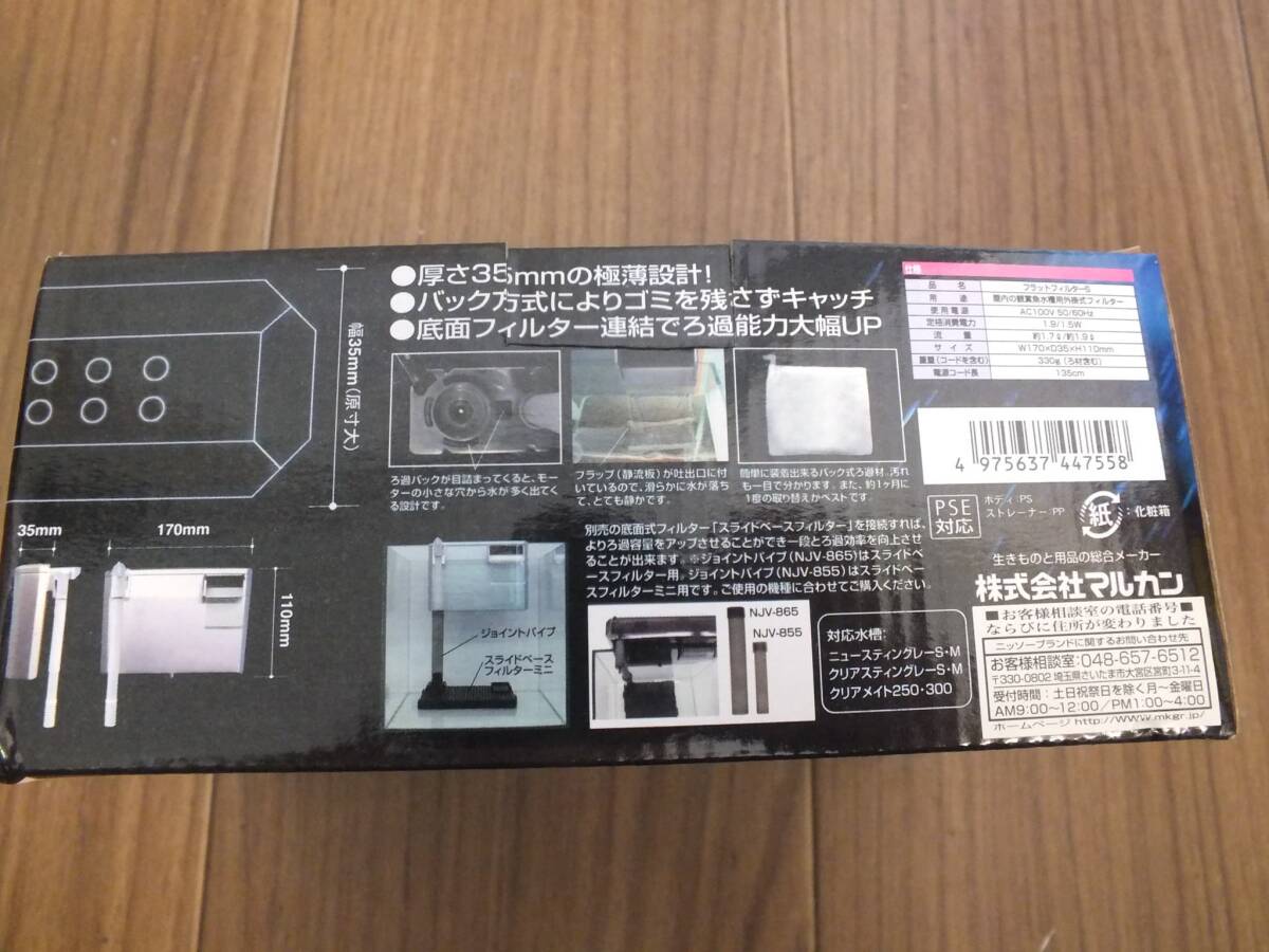 超薄型外掛け式フィルター ●厚さ35mmの薄型設計で水槽をすっきりスタイリッシュに見せ、どんなインテリアにも調和するシンプルなデザインです。 ●ろ過マットの新定番「バック方式」採用! 活性炭入りバックの内側を水が通るのでゴミ等を効率良く取り除けます。内と外側の表面積にバクテリアを付着させられバランス良く汚れを分解します。 ●フラップ(清流板)が吐出口に付いているので、滑らかに水が落ちて、とても静かです。 使用電源:AC100V 50/60Hz 定格消費電力:1.9/1.5W 流量:約1.7/1.9リットル サイズ:W170×D35×H110mm | |
