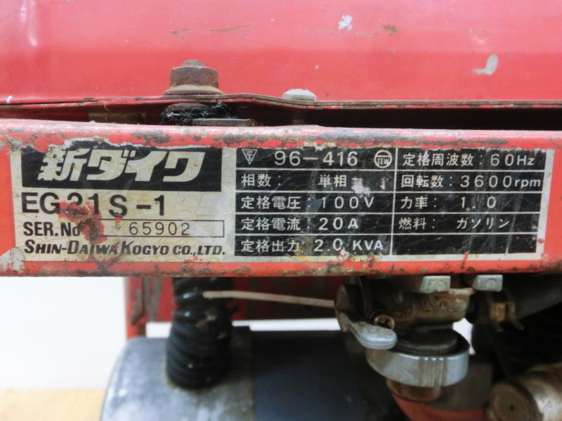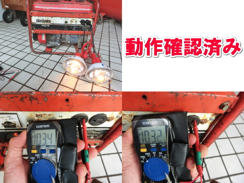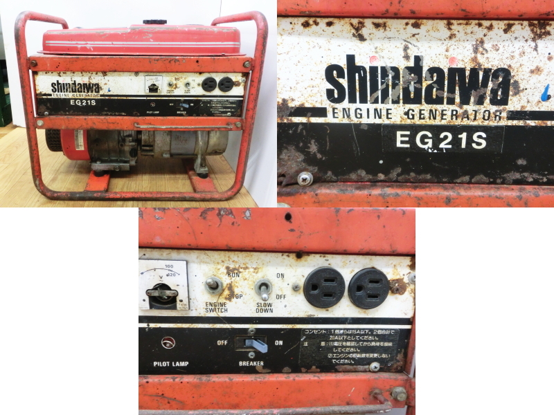 | 仕様 ●メーカー 新ダイワ工業 ●型式 EG21S-1 ●外形寸法 W600×D400×H490mm(本体、突起物含む) ●燃料 ガソリン ■新ダイワ工業製、エンジン発電機を激安価格にて提供いたしますので、この機会に是非よろしくお願いいたします。 ■ガソリン、オイル等消耗品は落札者様にてご用意の上ご使用ください。また消耗部品や、消耗品に関してはノークレーム、ノーリターンでよろしくお願いいたします。 ■画像記載通り、当方所有の投光器、テスターを使用して動作確認済みとなっております。低速~高速も問題ありません。テスターにて電圧も測定済みです。問題なく発電しております。ご検討宜しくお願い致します。 ■本商品の詳しい仕様はこちらよりメーカーホームページをご確認ください。 ■当方専門業者ではありませんので、細かな動作まではわかりかねますので、細かな点でのクレーム等はお受けいたしかねますので、御了承下さい。 ■当方本商品に対して専門知識がありませんので、専門知識を要する質問、動作にはお答えいたしかねますので、ご了承の上宜しくお願いいたします。 ■簡単な清掃も行っていますのでご検討宜しくお願い致します。 ■新品ではありませんので使用感や多少のキズ等あります。ご理解のうえ入札ください。コンディションに強いこだわりのある方はトラブルの原因となりますので、入札はお控え下さい。 ■TOP画像にあるものが全てです。※大きな商品や重い商品は、台車等に乗っていることや動作確認時に、当方所有の備品を使用して確認しますが、そちらは商品には含みませんのでご理解の程、お願い致します。 ■その他ご質問はお気軽にどうぞ。 ■領収証をご希望の場合は、取引メッセージより宛名と但し書きを記載の上、落札時にご連絡をお願いいたします。 | ||