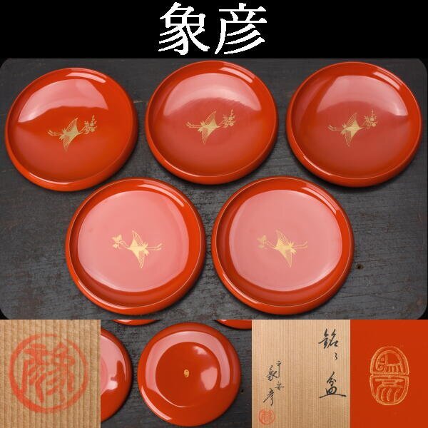 | 平安象彦の松喰鶴蒔絵銘々皿5客。共箱有。真作保証。 もちろん、本木地・本漆塗です。 サイズは、幅約14cm、高さ約2cm。 1客、底にスレあります。 他4客に傷・直し・ヤケ・歪み等ありません。 状態・詳細は、画像でご確認お願いいたします。 |