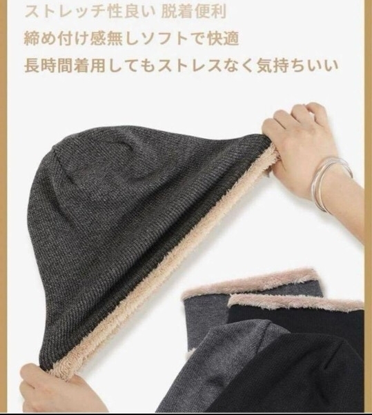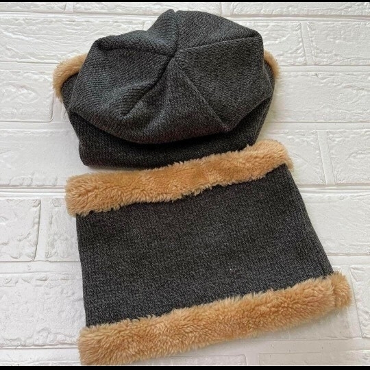 ニット帽 ネックウォーマー 2点セット 伸縮性 男女兼用 グレー あったか素材【ダークグレー】