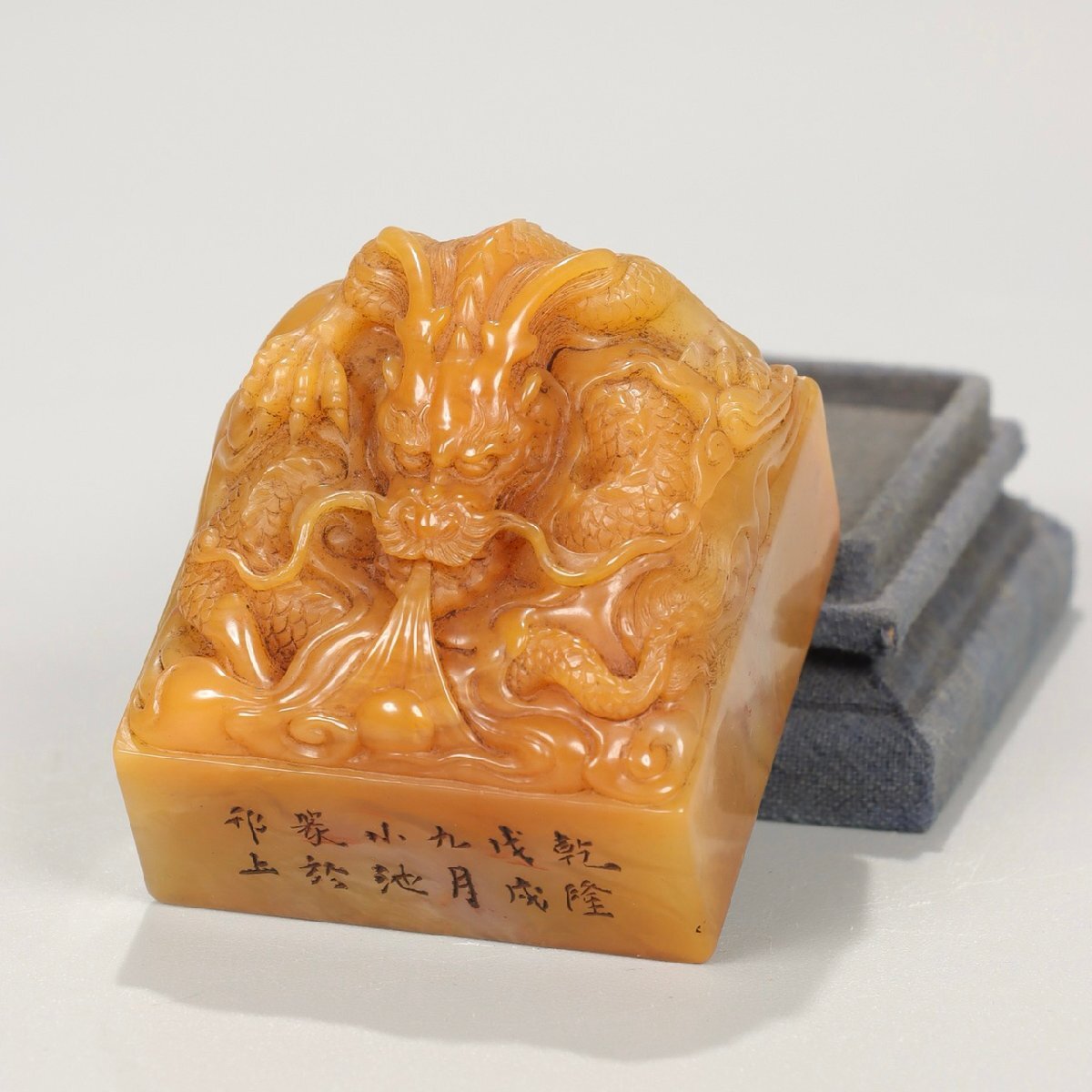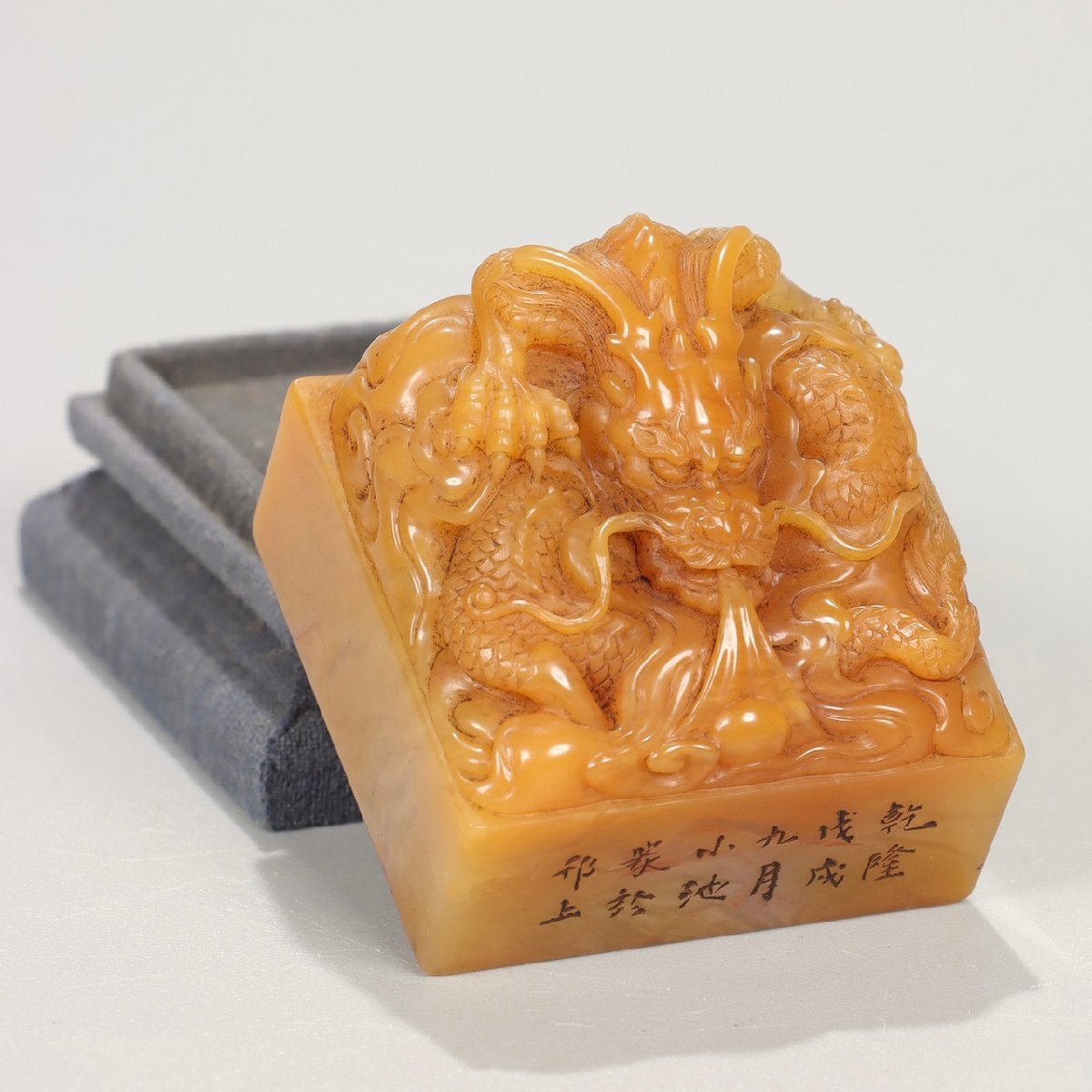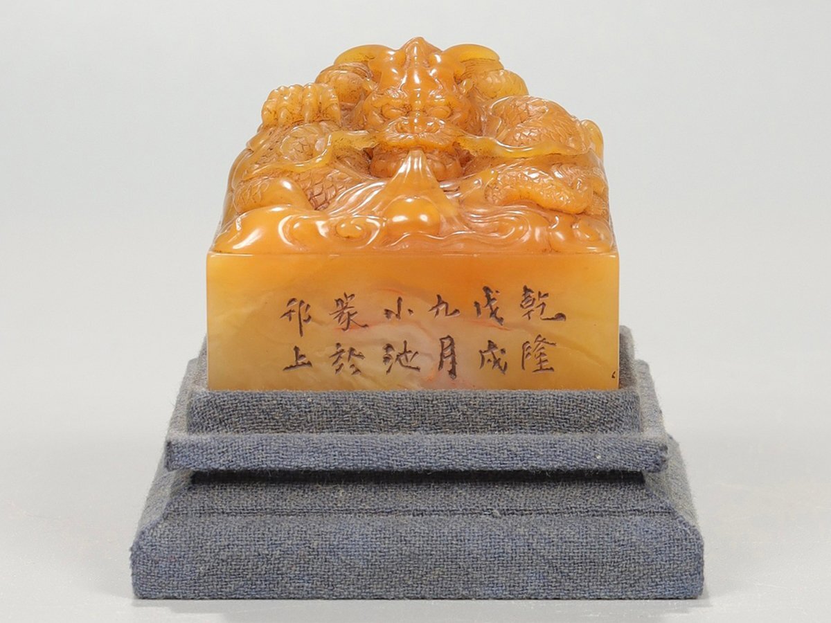 【安】清時代 小池銘 寿山田黄石彫 盤龍鈕印章 印鑑 共箱 極細工 古置物 古擺件 中国古美術 時代物 299 サイズ(約寸) |