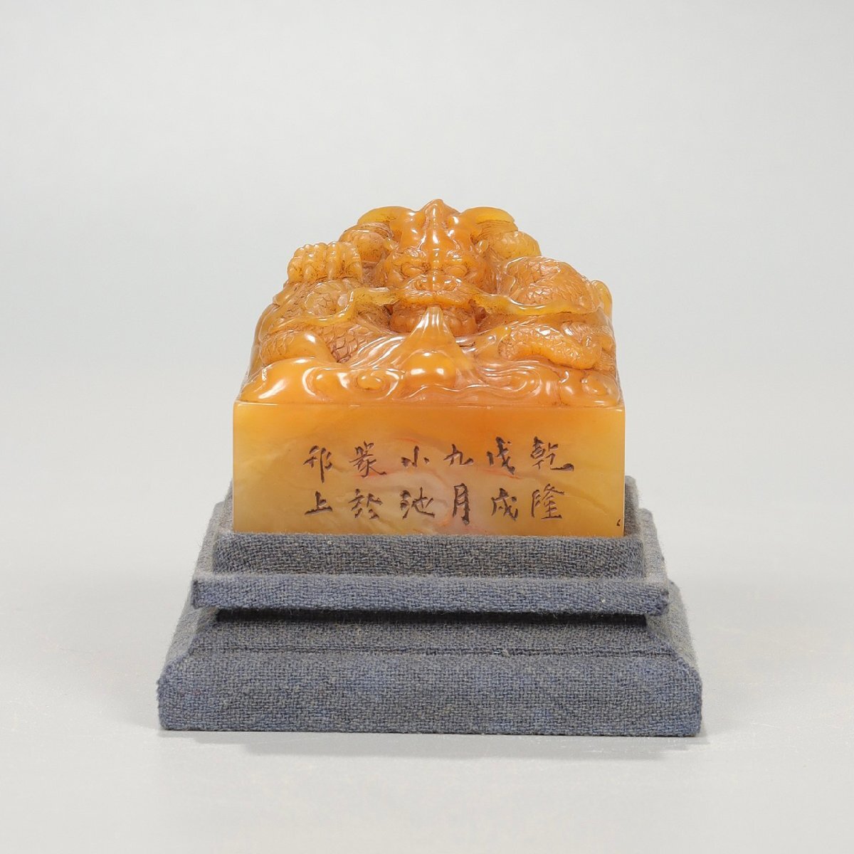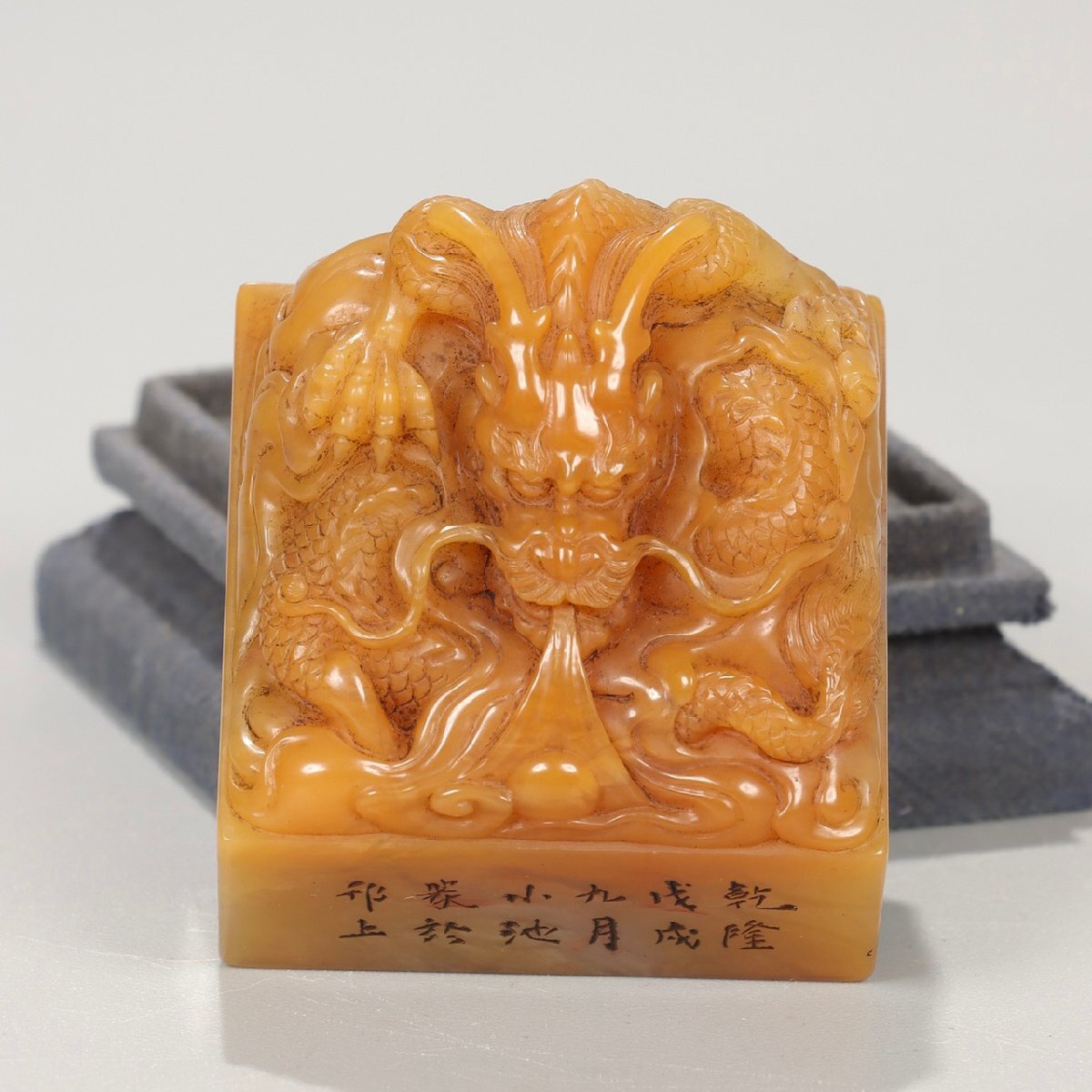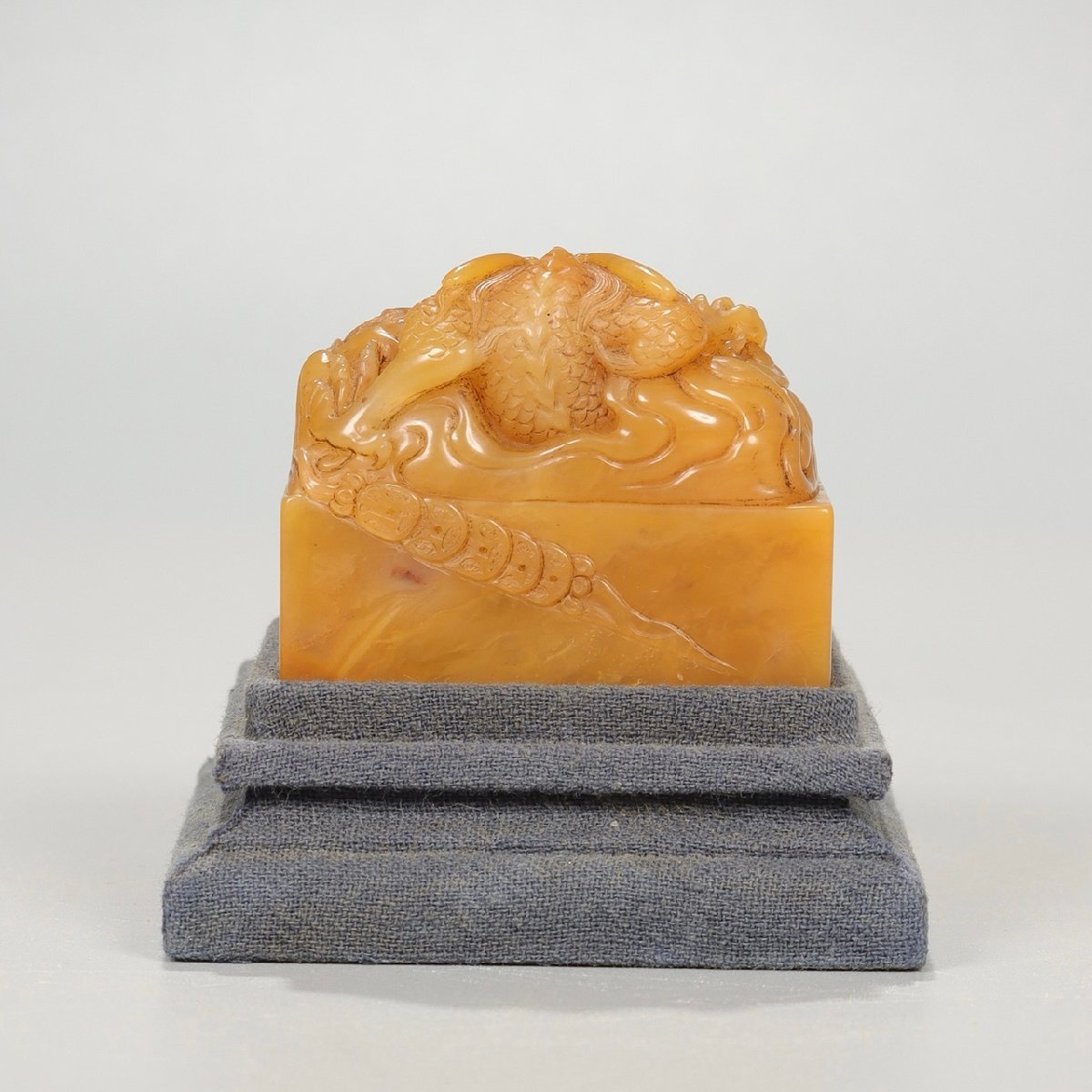【安】清時代 小池銘 寿山田黄石彫 盤龍鈕印章 印鑑 共箱 極細工 古置物 古擺件 中国古美術 時代物 299 サイズ(約寸) |