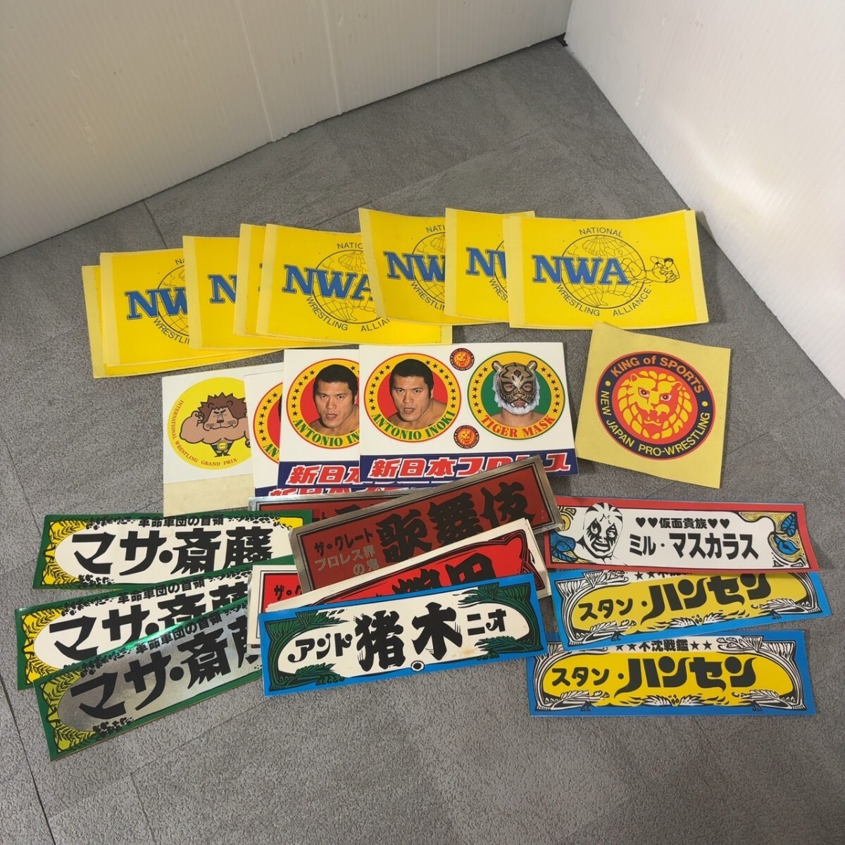 【32枚セット】プロレス ステッカー NWA 新日本プロレス アントニオ猪木 タイガーマスク ミルマスカラス ジャンボ鶴田 ザ グレート歌舞伎 ジャイアント馬場 ハルクホーガン マサ斎藤 スタンハンセン IWGP まとめ
