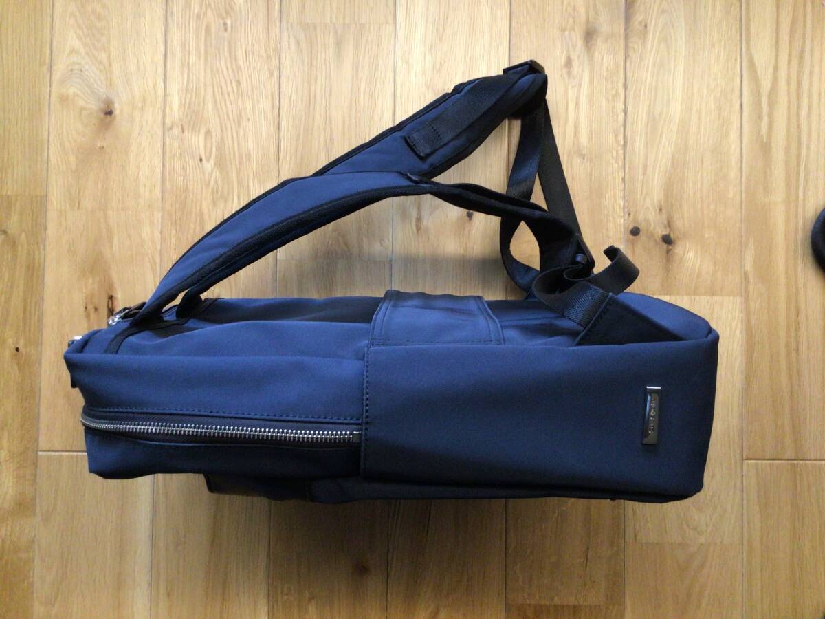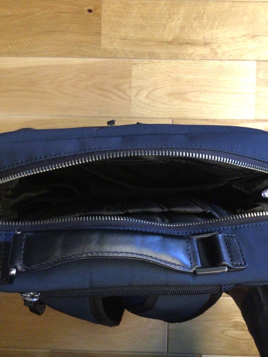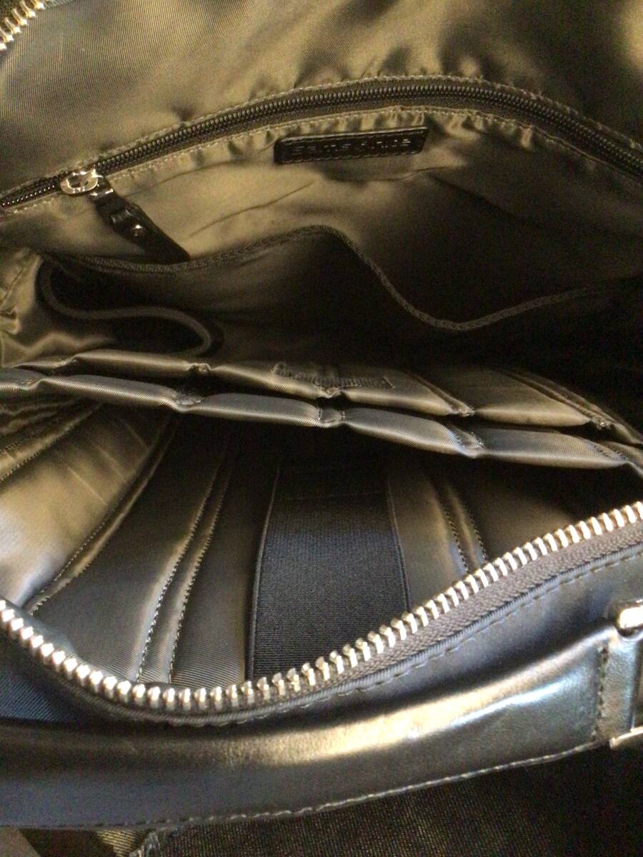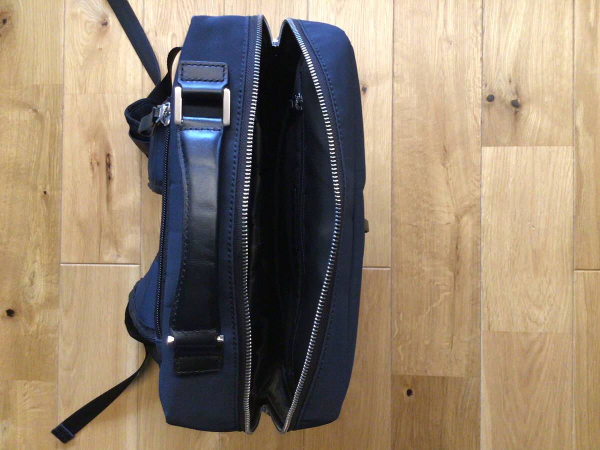 ビジネス用として購入しておりましたが多数保有しており、用品整理のため出品しております。使用回数も少なく、使用しない際はタンス内で保管しており、美品かと思います。カッチリした作りです。素人採寸ですがサイズとして、高さ38CM 幅32CM 厚み11CM程度です。パソコンを入れるパッド入りの部分たペットボトル、傘入れ他カバン内には収納場所が多数あり工夫が施されております。