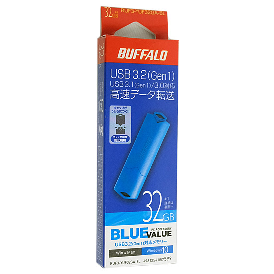 | BUFFALO USB3.1(Gen1)/USB3.0対応 USBメモリー RUF3-YUF32GA-BL 32GB ブルー | |
