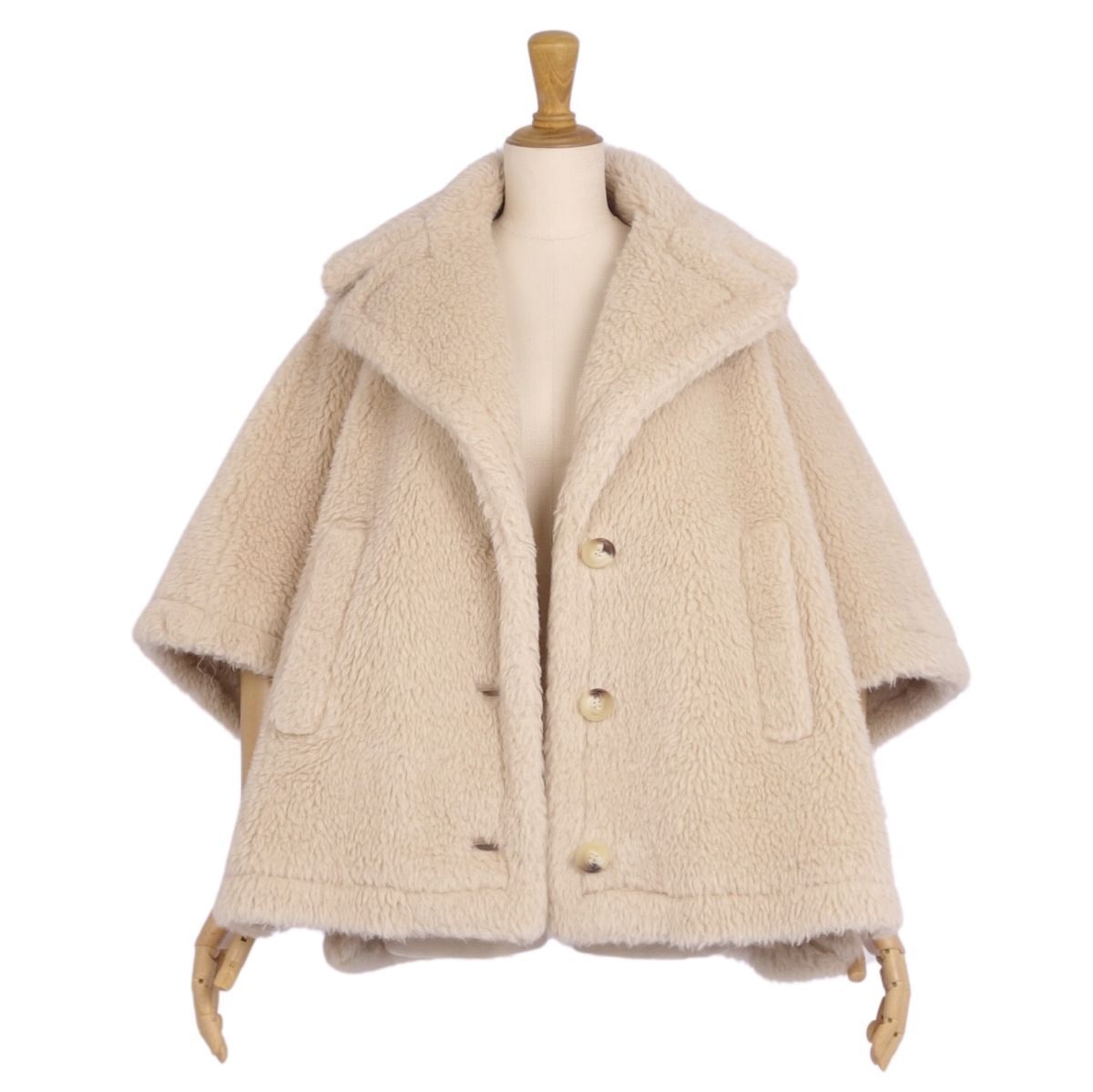 | 極美品 マックスマーラ Max Mara コート 2023 白タグ テディベア ポンチョ キャメル シルク レディース SM ベージュ |