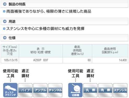 サイズ:外径(Φmm)105 厚さ(mm)1 穴径(Φmm)15            粒度60             両面補強