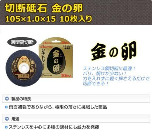 【商品説明】  レヂトン       切断砥石       金の卵 (10枚入)           105×1.0×15