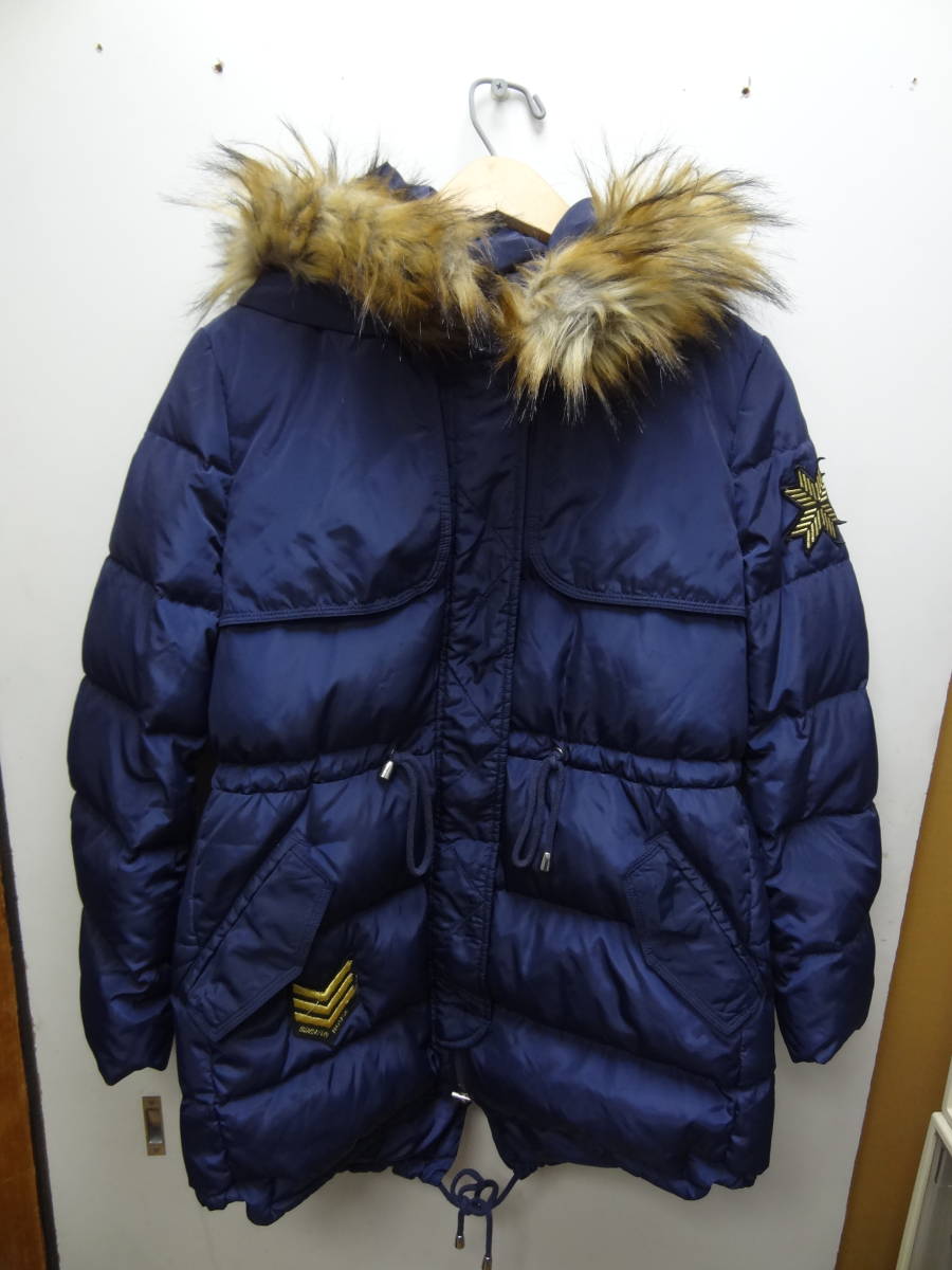 全国送料無料 中国有名ブランドSemir森馬 レディース 紺色 脱着可能ファー付きパーカーダウンジャケットコート L(165/88A)サイズ
