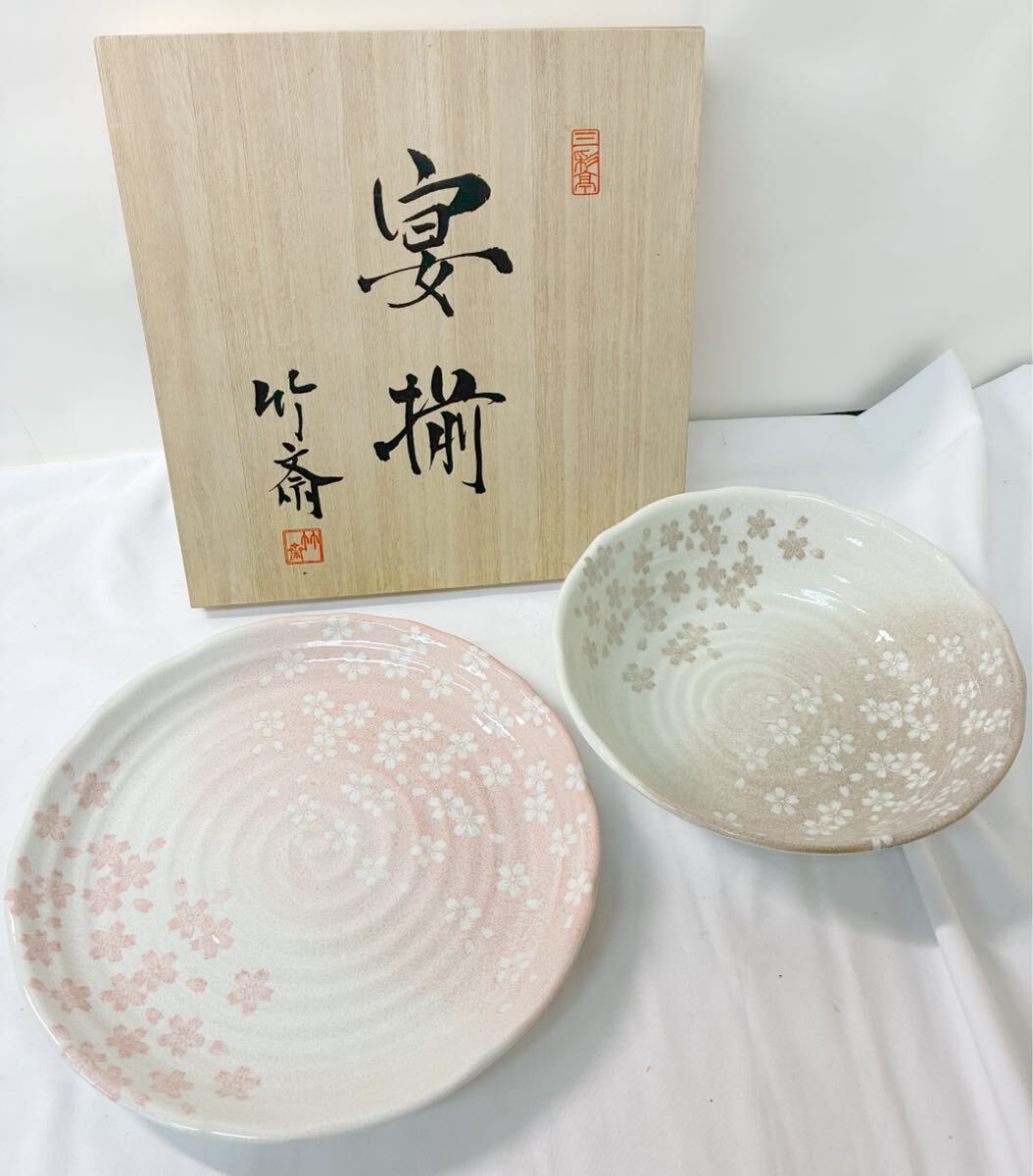 実家の整理で出てきた未使用品 宴揃 竹斎 花みずき 大皿 深皿 和食器 陶器 三彩亭となります。