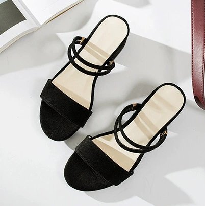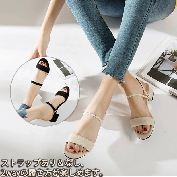 スエード ミュール 美脚 ミュール サンダル ローヒール シューズ ストラップあり&なし 2way 履き方