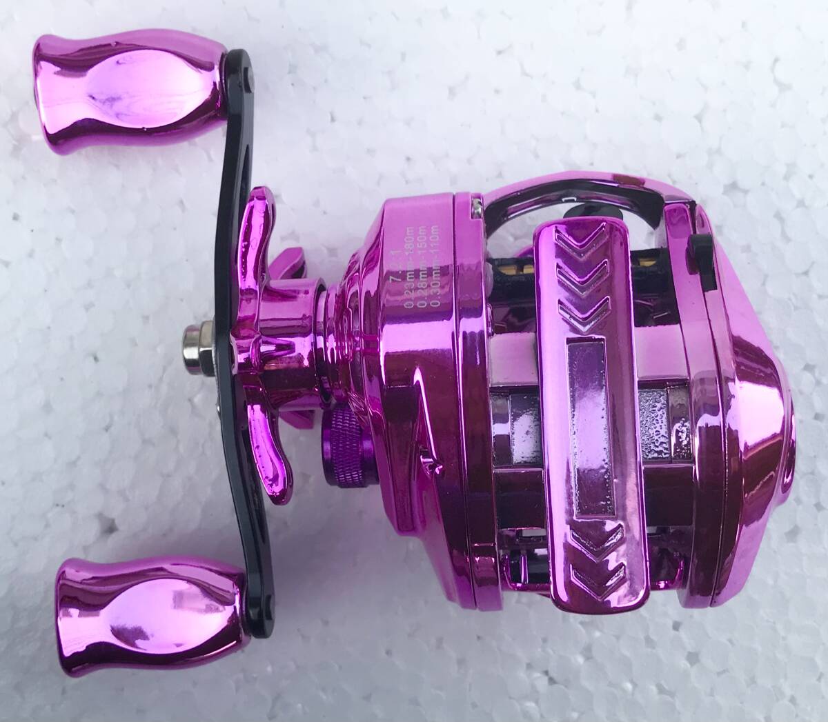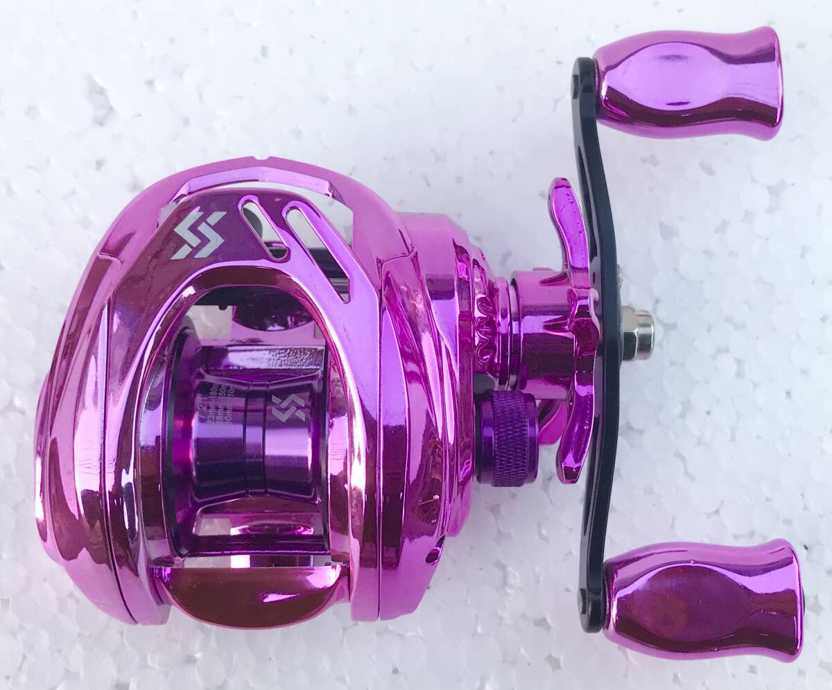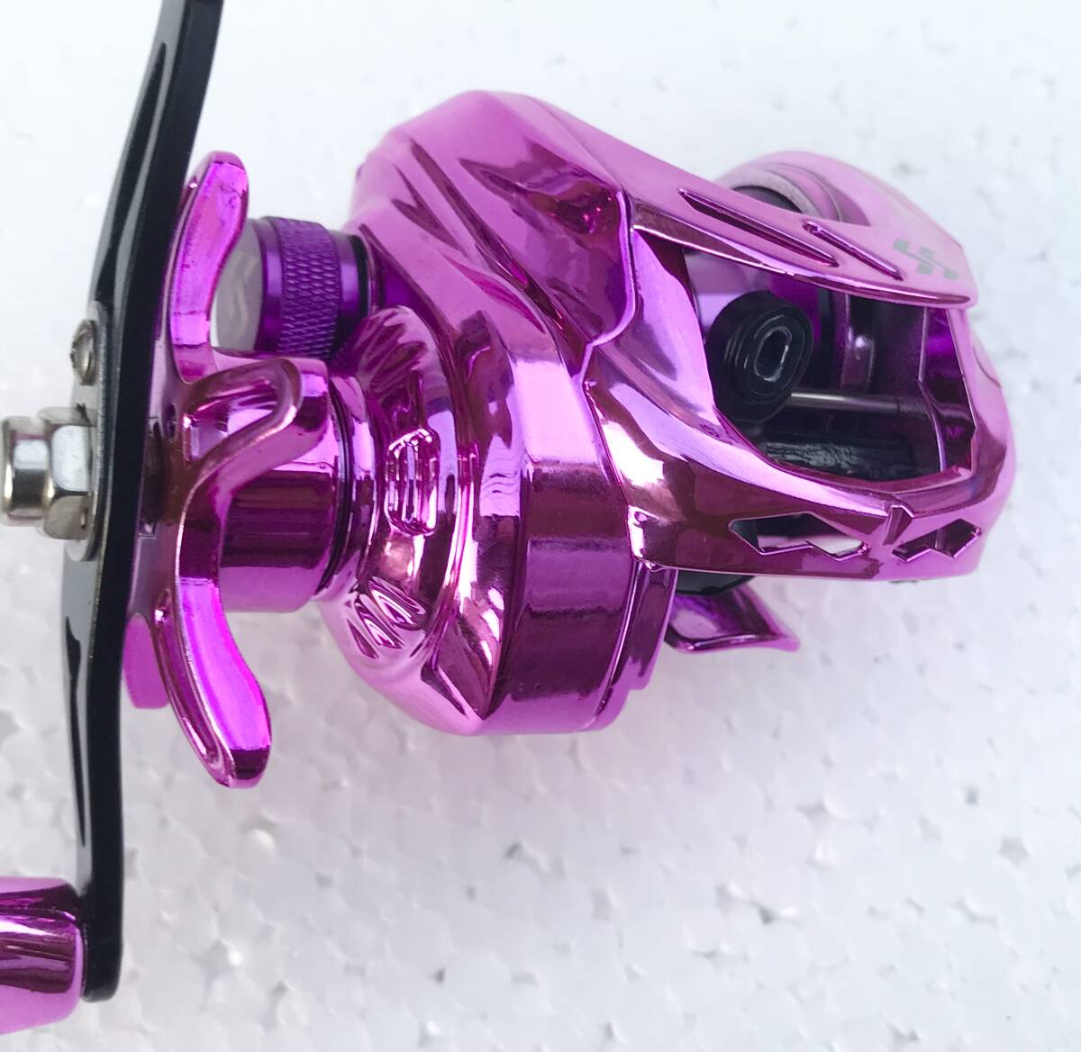 写真のSOUGAYILANGベイトキャスティングリール スペシャルカラークロームピンクメタリック右ハンドル(新品未使用)を発送します(送料無料)。