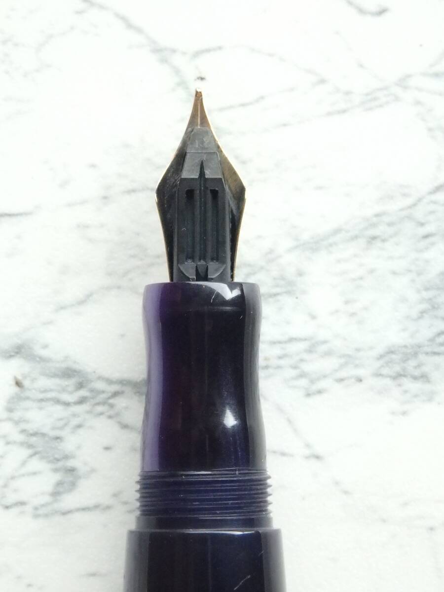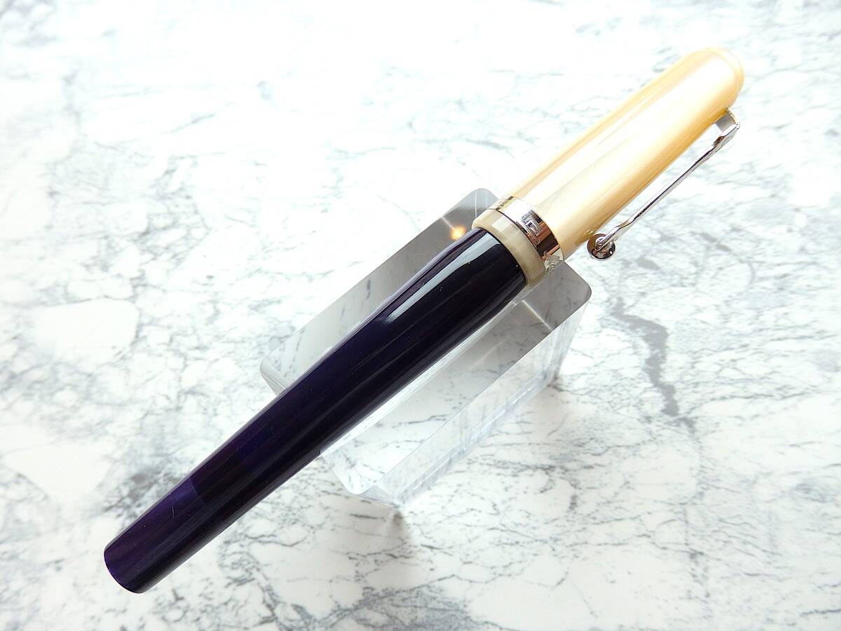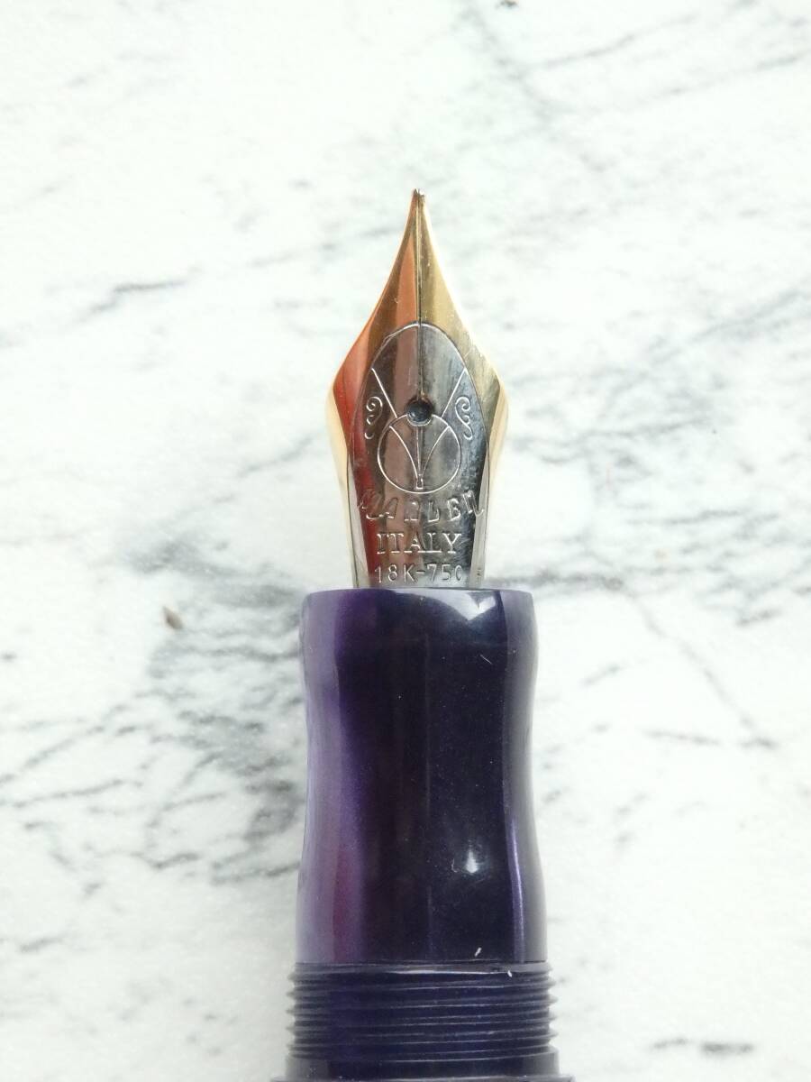 大理石調のイタリアンレジンにバイカラーの18K750ソリッドゴールドのFニブが奢られています。