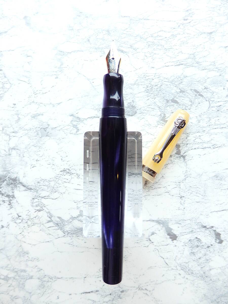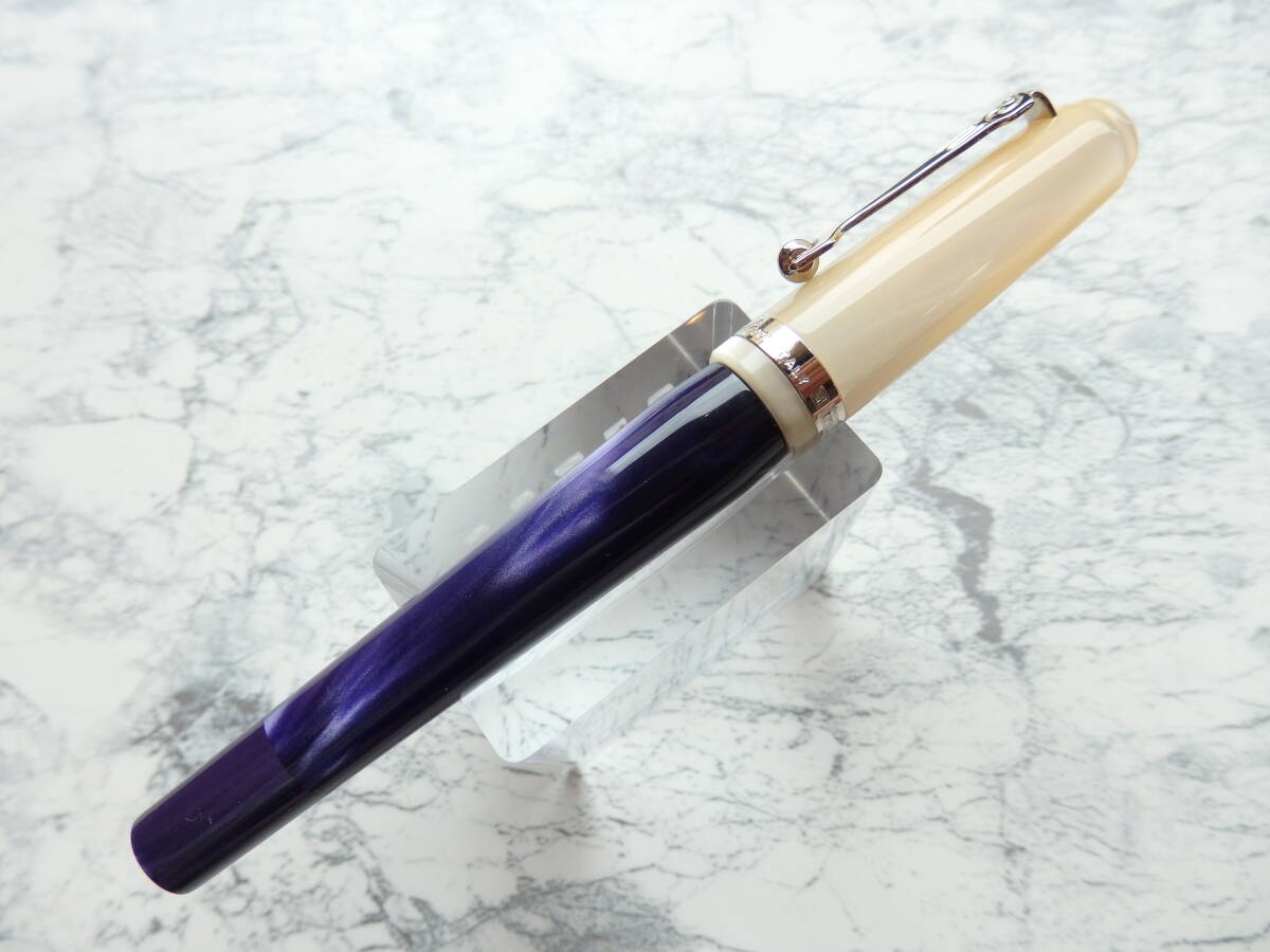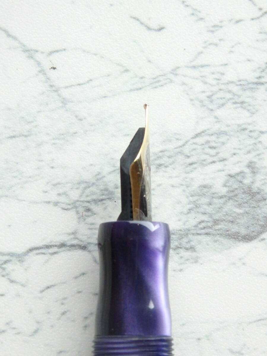 大理石調のイタリアンレジンにバイカラーの18K750ソリッドゴールドのFニブが奢られています。