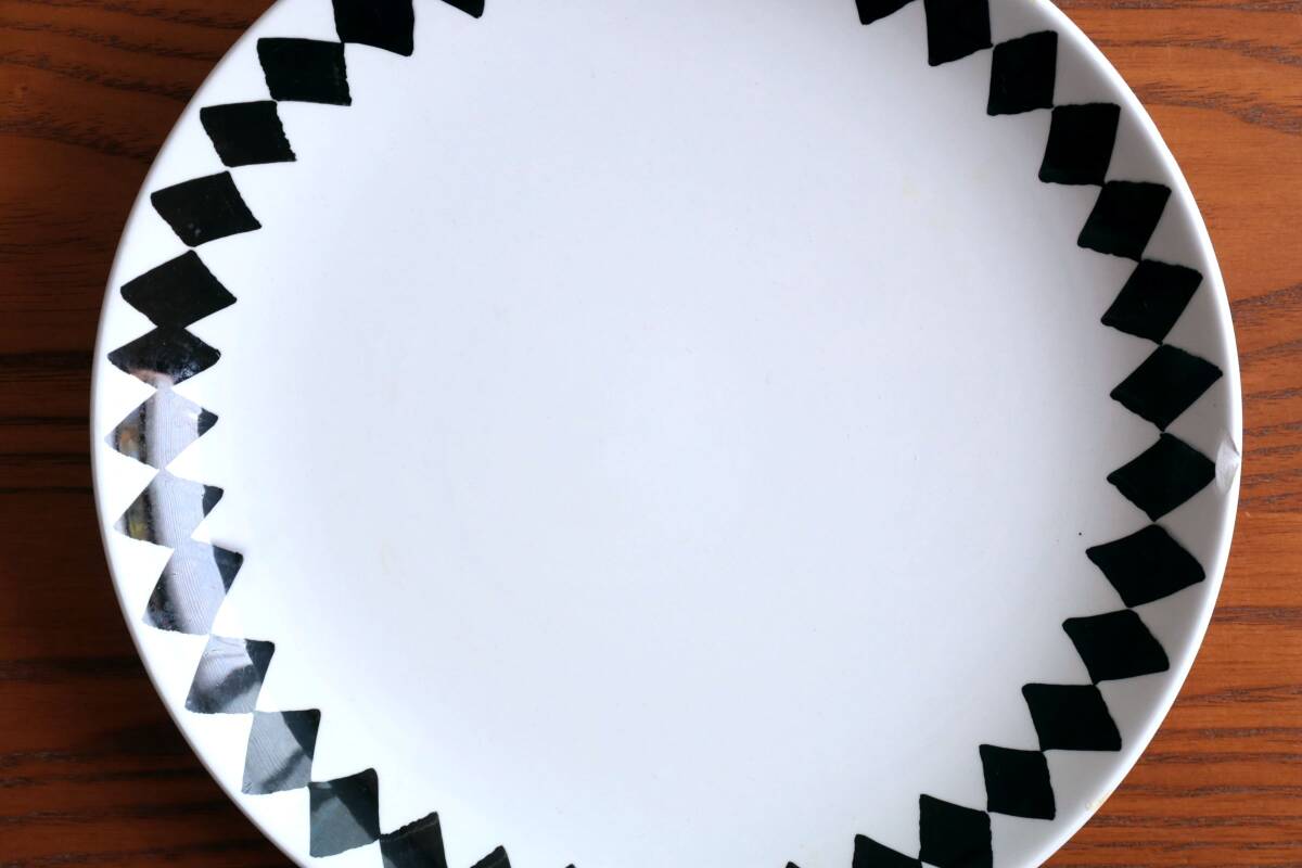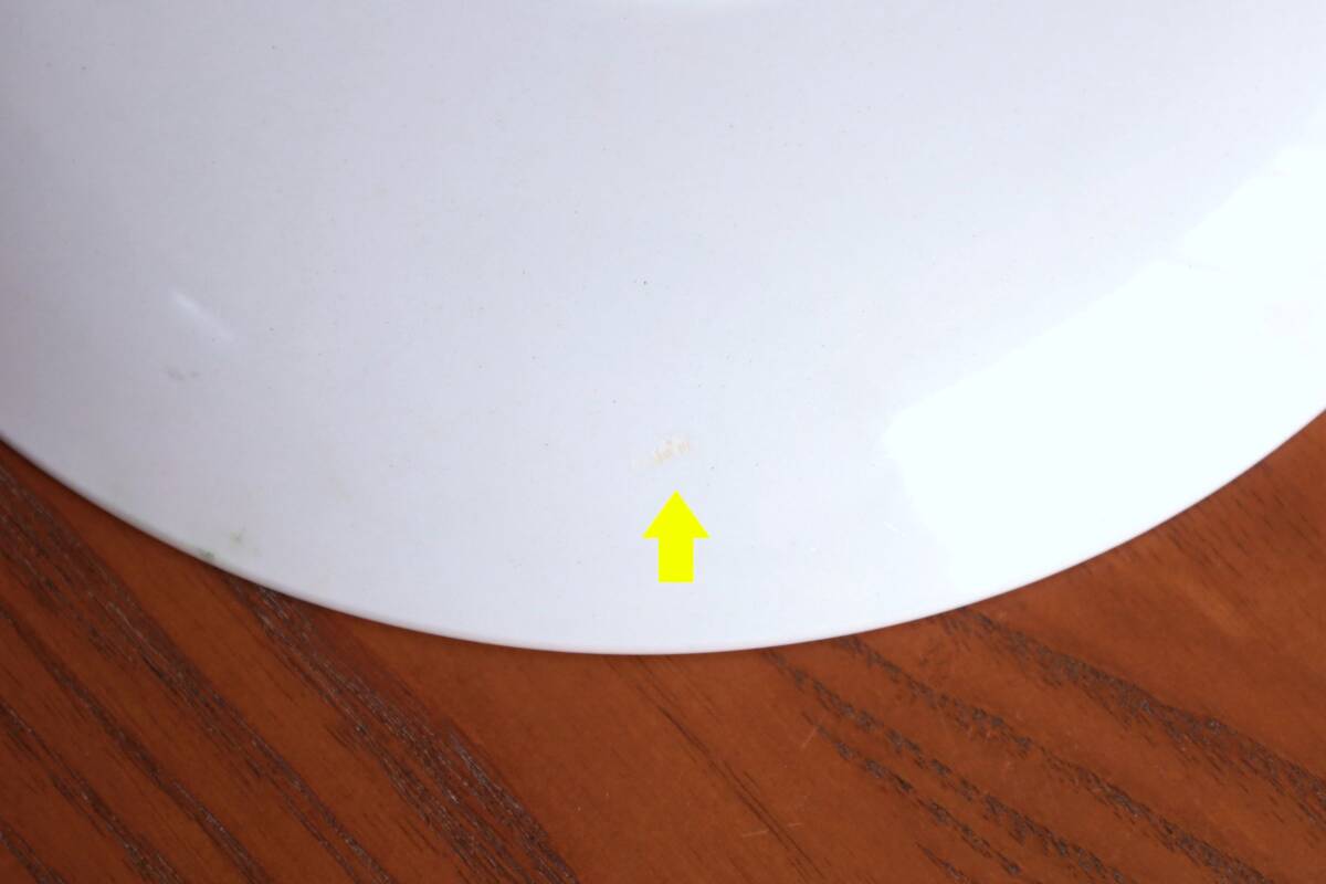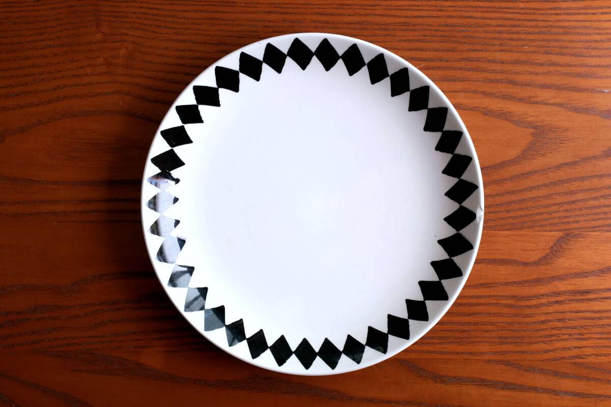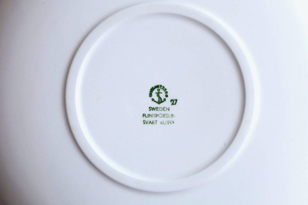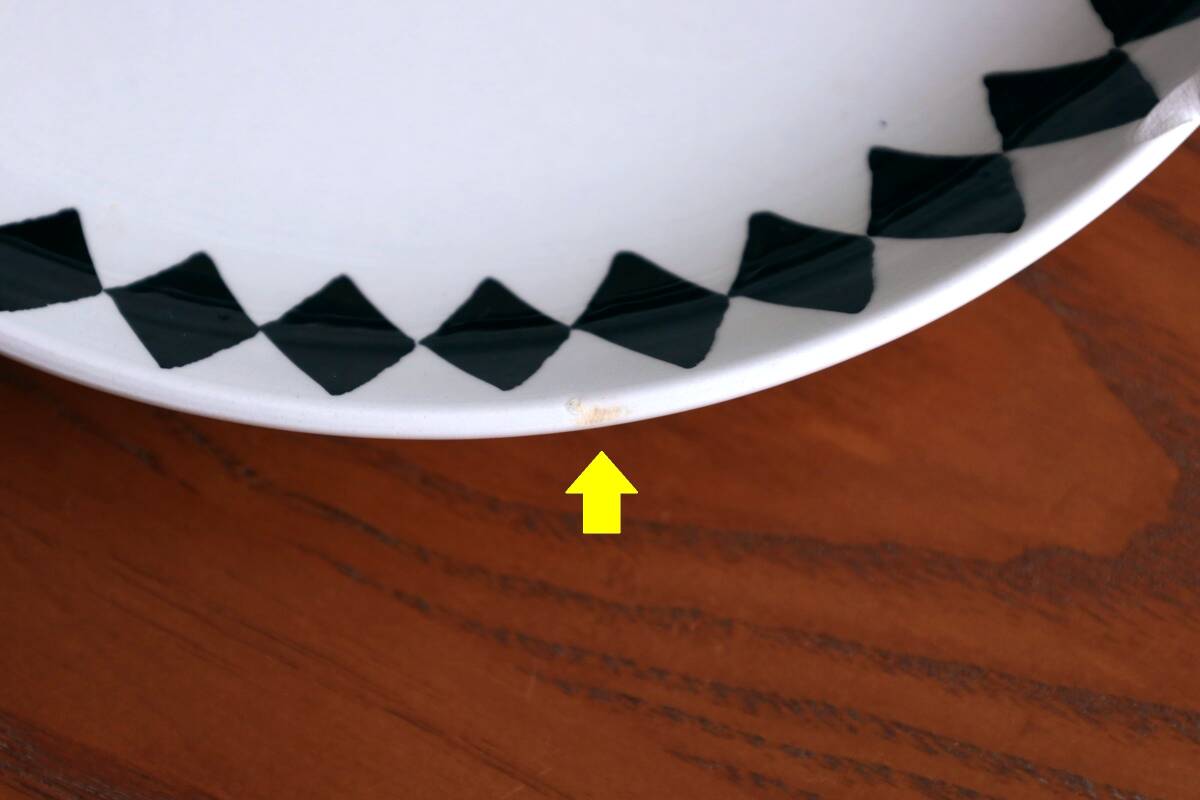 | 商品説明 | 品名:Svart Ruter Plate プレート 21cm デザイン:Karin Bjorquist メーカー:Gustavsberg グスタフスベリ 製造年代:1952年 サイズ:Φ20.2cm H2.5cm コンディション:表側は、擦れがやや目立ちます。縁に1か所カケがあります(画像5)。裏側は、擦れがやや目立ちます。縁や裏側には焼成時の釉薬のかかっていない部分が数か所あり、多少変色が見られます(画像6,7)。 黒のダイヤが印象的なSvart Ruterシリーズのランチプレート。洗練されたデザインながら、手描きされたペイントに温かみを感じます。 |