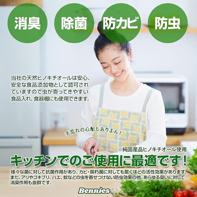 純国産のヒバ抽出ヒノキチオールを贅沢に使用した商品で、非常に幅広い効果があるため色々な用途にご使用いただけます。