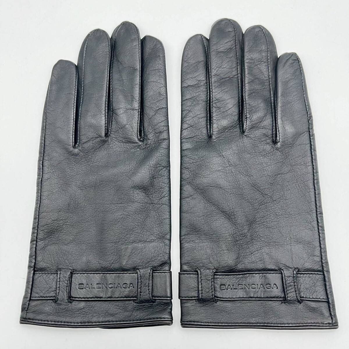 SW0329-10-3 BALENCIAGA バレンシアガ レザー 手袋 ブランド小物 ブラック 全長23cm 60サイズ