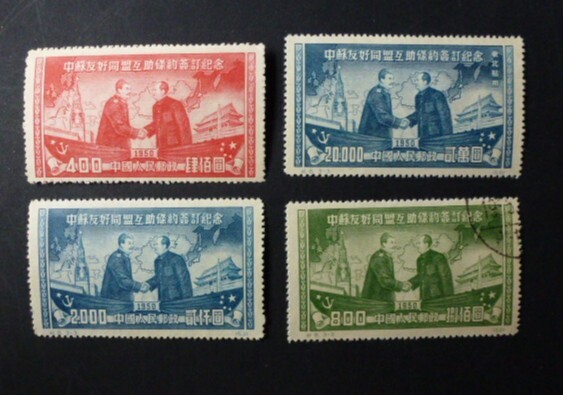 新中国   中ソ交友 4枚  (2000は東北貼用)   画像の通り    未使用と使用済  美品  。