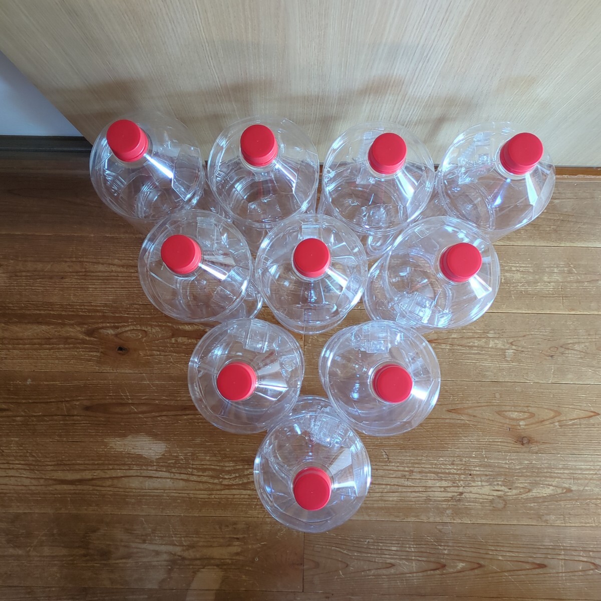 ご覧いただきありがとうございます。 全て同じ物、10本組です。 焼酎25度が、入ってました。 用途は色々で、災害非常用水タンク、水の汲み置き用、猫避け用、工作用に適してます。 送料につきましては、なるべくコンパクトに梱包しますが、物が物なので、小さくは出来ません。 お近くなら、手渡しも可能かと。 落札後は素早いお取引及び3Nでお願いします。