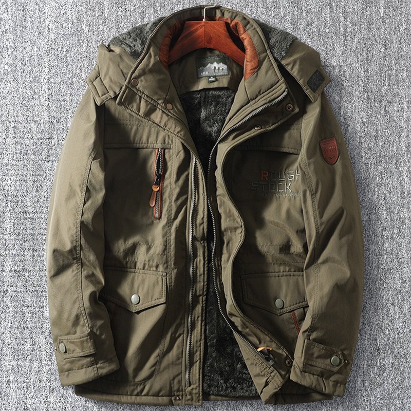 新品 大きいサイズ 極暖 中綿ジャケット 裏起毛 防寒 フード取り外し可能 厚 防風 暖かい 多ポケット 冬服 メンズ コート カーキ T8151-XL