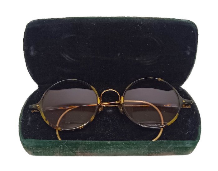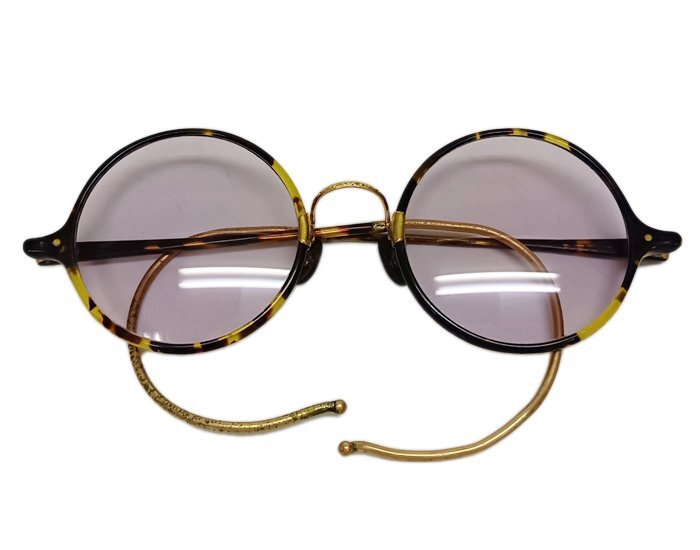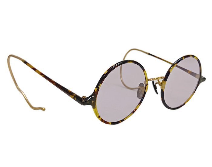 べっ甲 鼈甲 丸メガネ 色付 サングラス 金ブリッジ 色眼鏡 メガネ ヴィンテージ ケース付 X線検査済