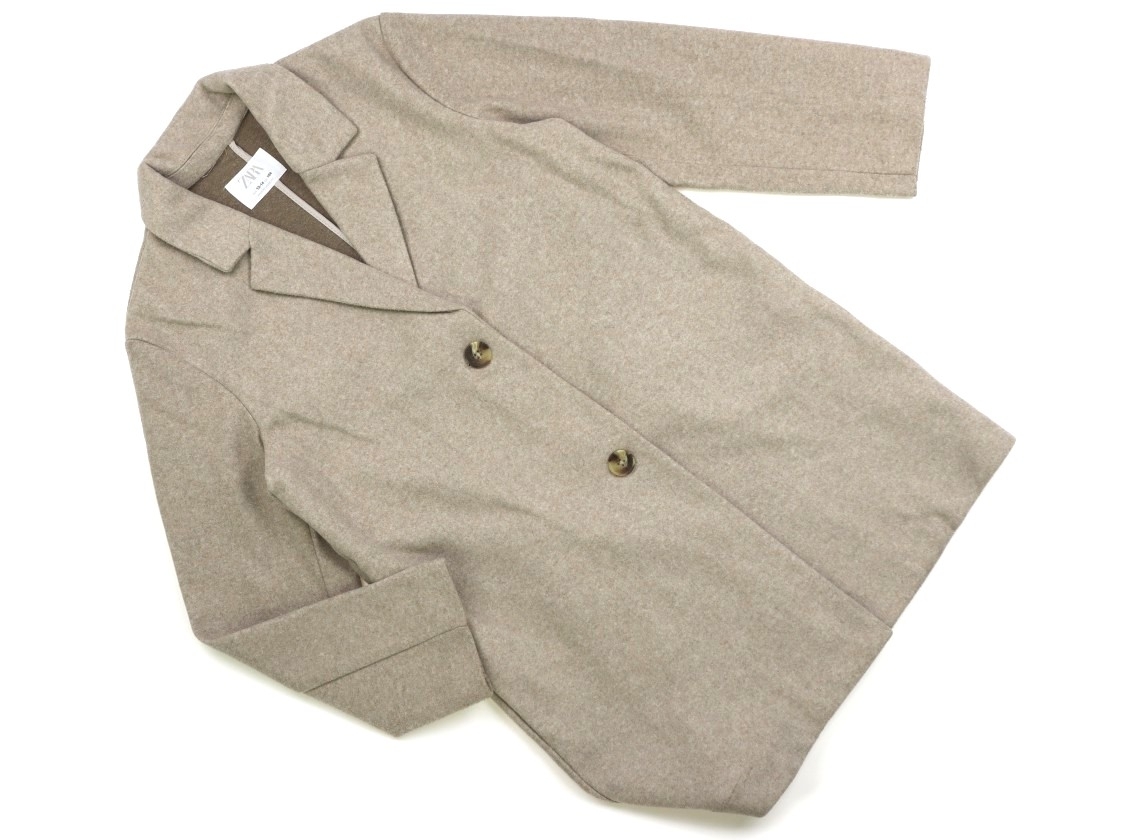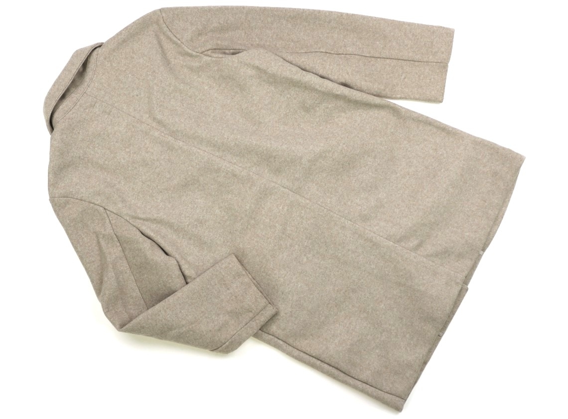 実際のサイズ表記は164cm。品質タグが切られています。素材不明。あたたかそうなフェルト調生地です。裏地なし。袖口に毛玉付着、裾に薄い汚れがありますがまだまだお使い頂けそうです。