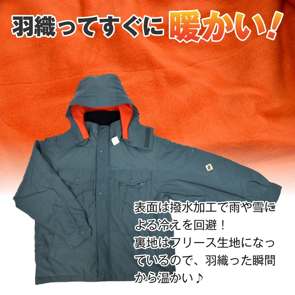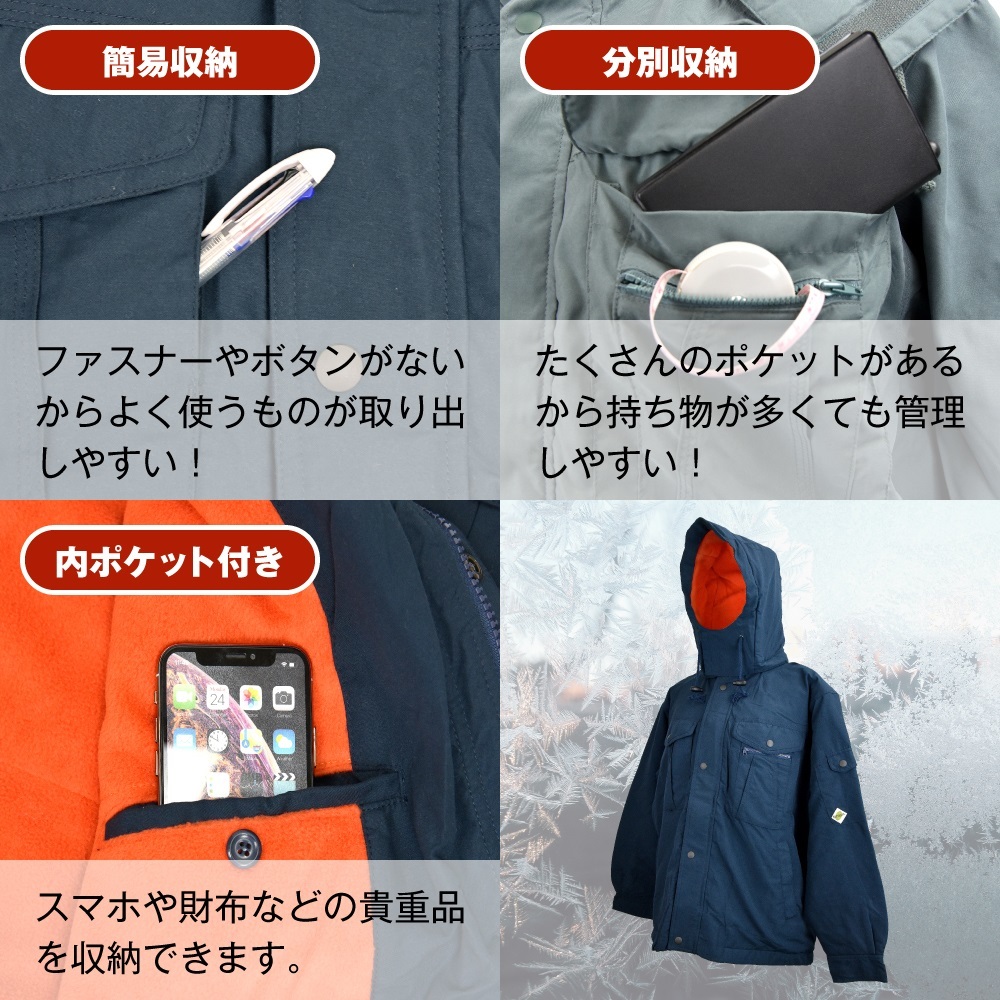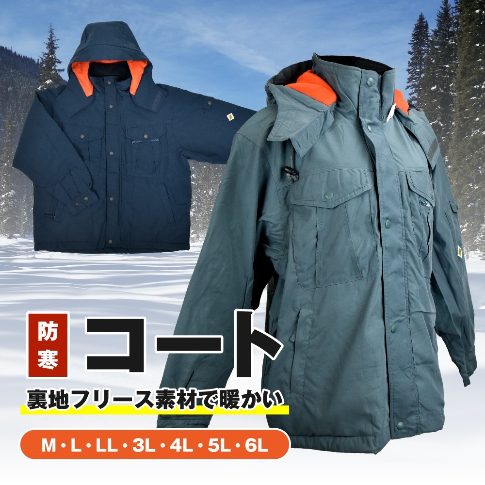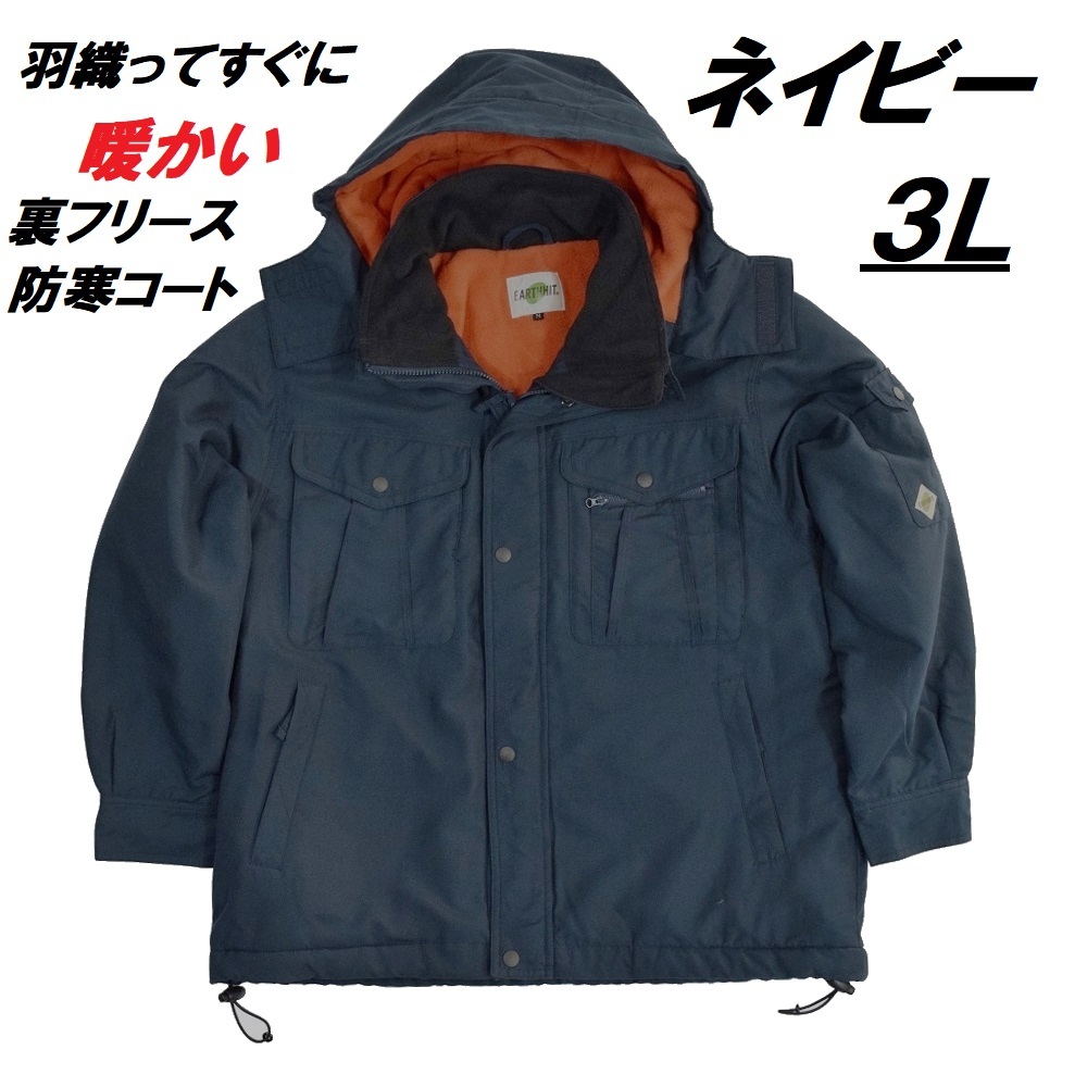 防寒コート 3L ネイビー 裏フリース 旭蝶 69000 撥水加工 アウトドア ウィンタースポーツ 屋外作業 複数収納 フード取り外し可能